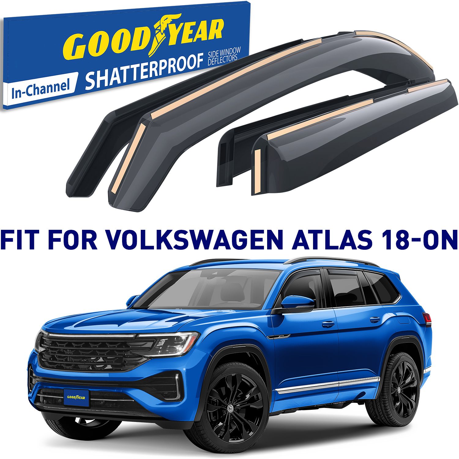 Goodyear Shatterproof in-Channel Window Deflectors for Volkswagen Atlas 2018-2023, Rain Guards, Window Visors for Cars, Vent Deflector, Car Accessories, 4 pcs – GY007701