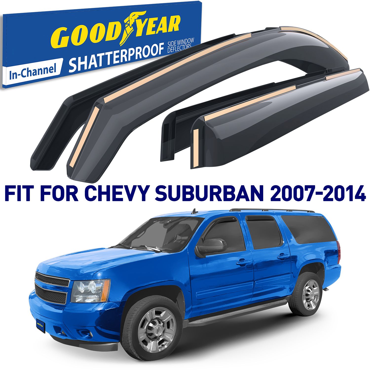 Goodyear Shatterproof in-Channel Window Deflectors for Chevrolet(Chevy)Suburban 1500 2007-2014/Suburban 2500 2007-2013,Rain Guards, Window Visors for Cars, Vent Deflector, Car Accessories, 4 pcs-GY007710