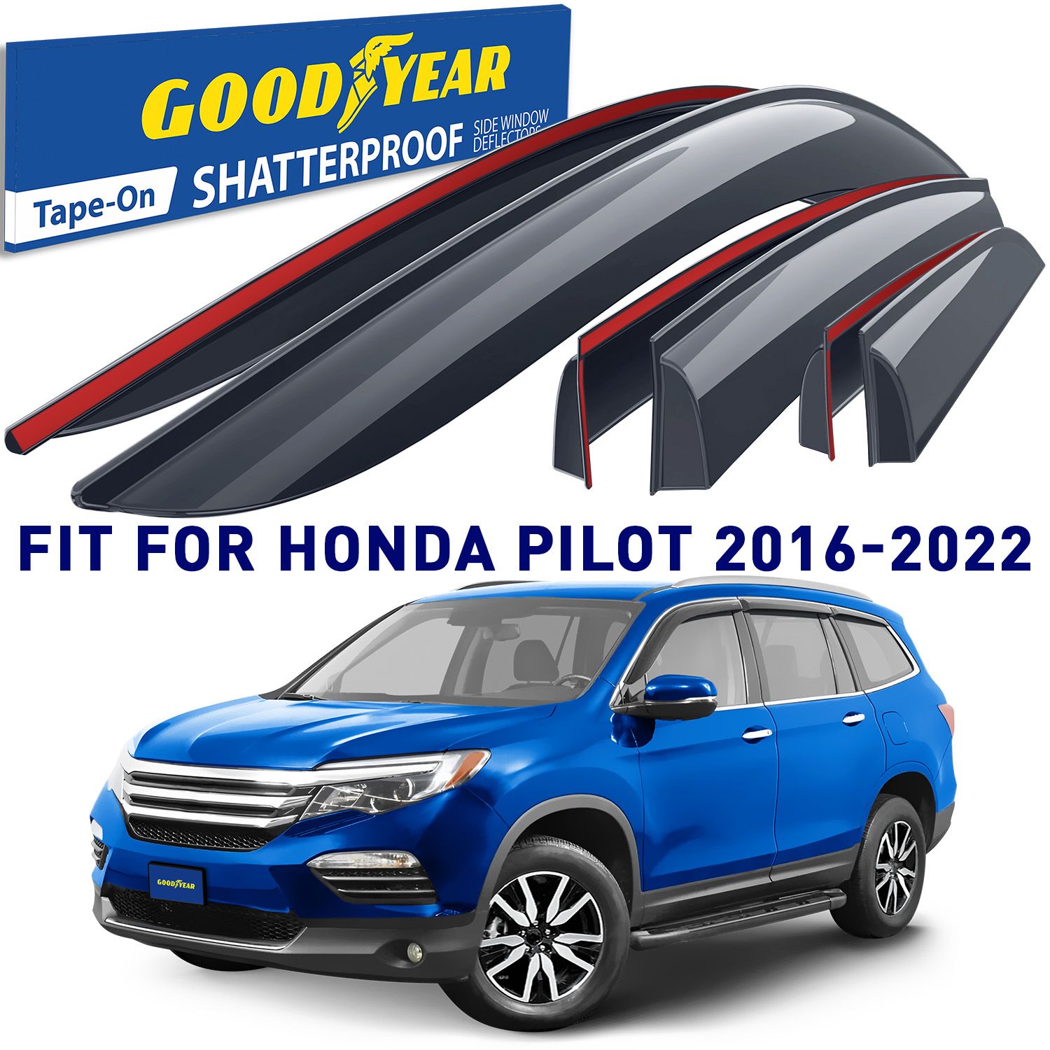 Goodyear shatterproof Window Deflectors for Honda Pilot 2016-2022, Tape-on Rain Guards, Window Visors, Vent Deflector Visor, Car Accessories, 6 pcs. – GY008679