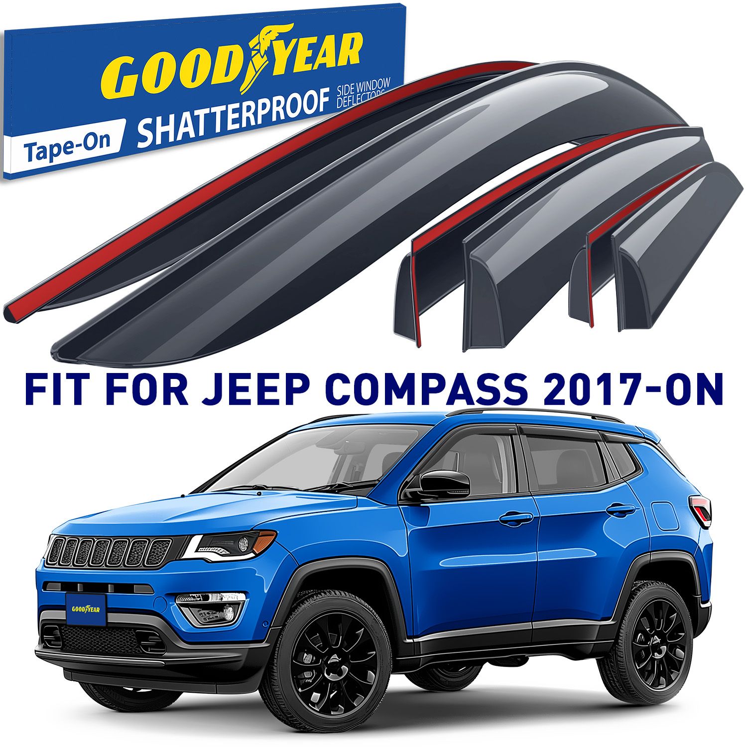 Goodyear Shatterproof Window Deflectors for Jeep Compass 2017-2025, Rain Guards, Window Visors for Cars, Vent Deflector, Car Accessories, 6pcs., – GY008681