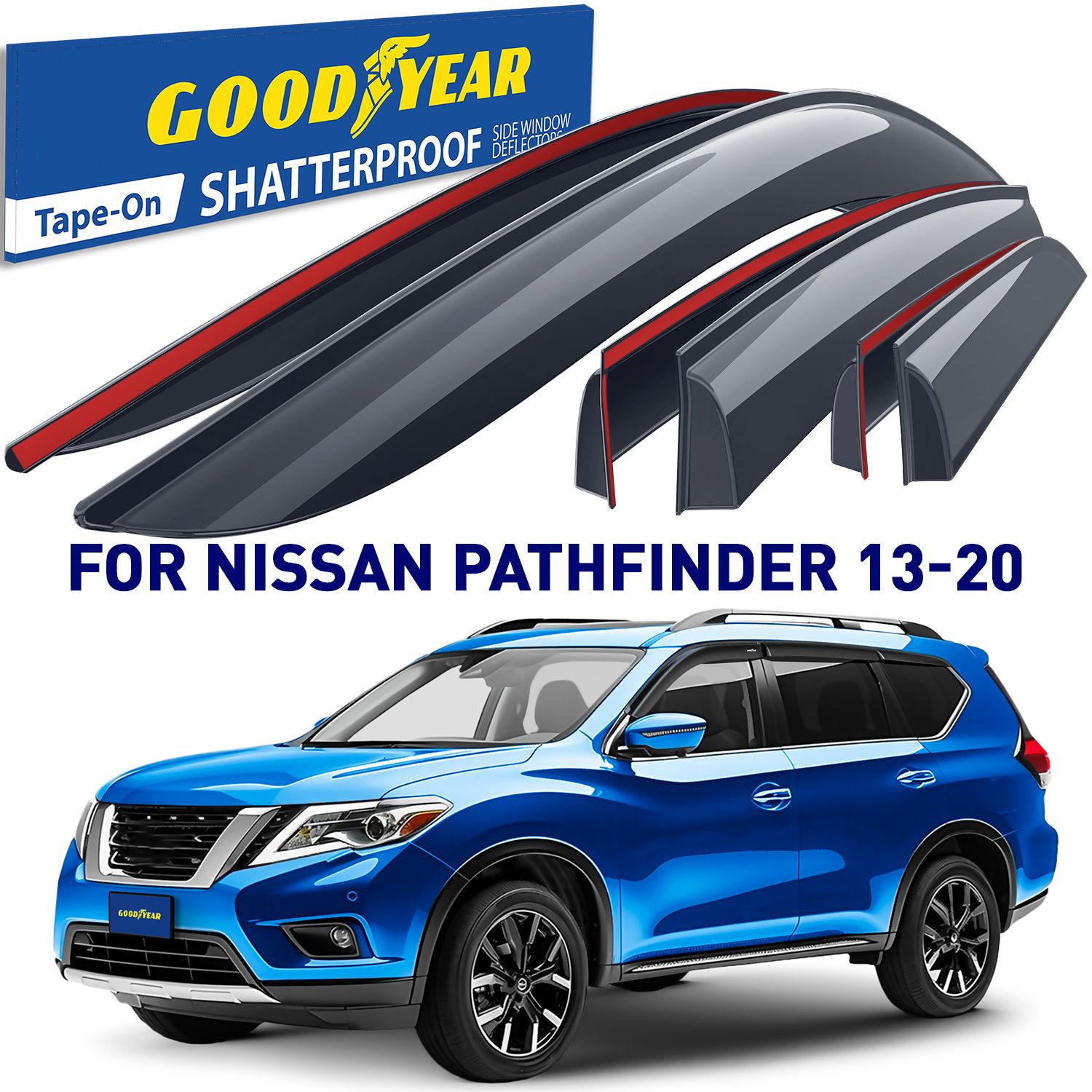Goodyear Shatterproof Window Deflectors for Nissan Pathfinder 2013-2020, Rain Guards, Window Visors for Cars, Vent Deflector, Car Accessories, 6pcs., – GY008683