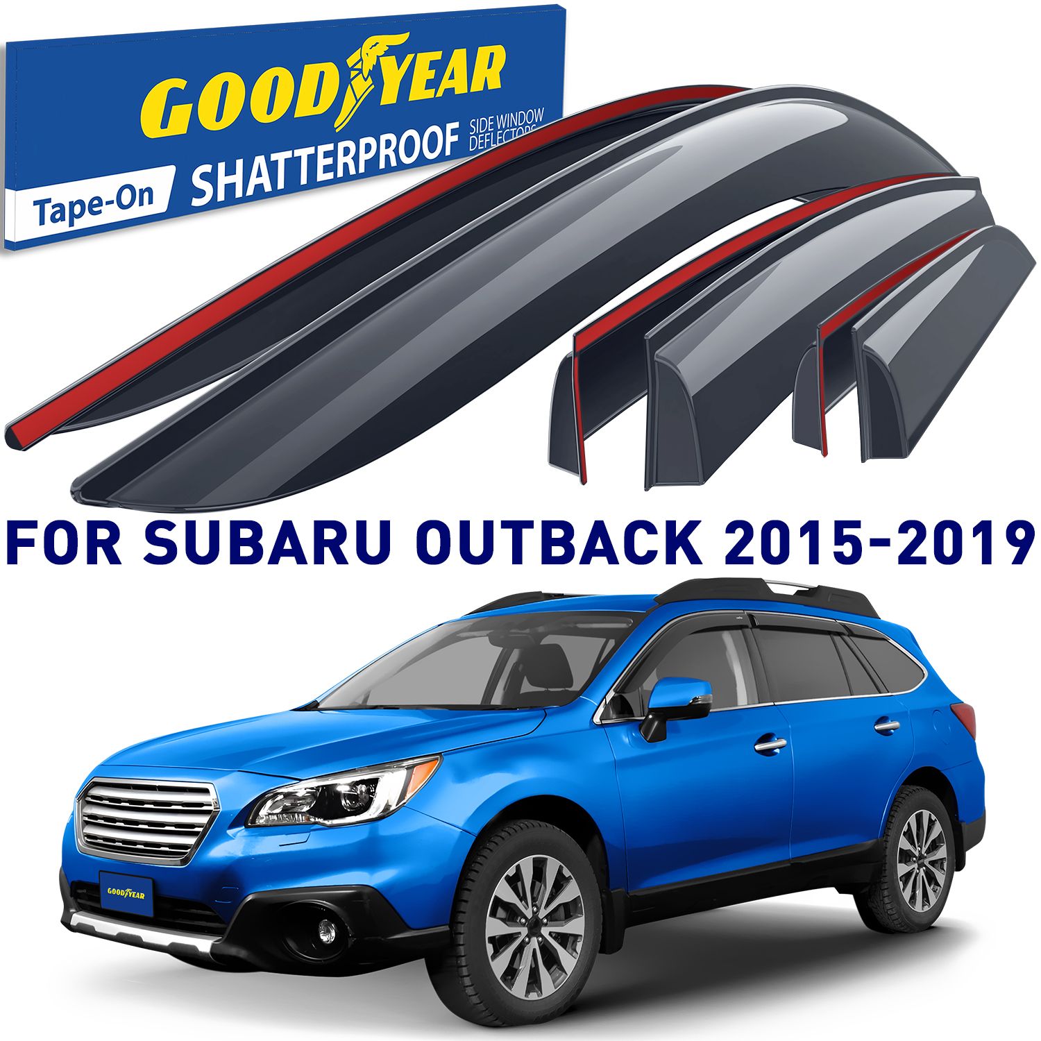 Goodyear Shatterproof Window Deflectors for Subaru Outback 2015-2019, Tape-on Rain Guards, Window Visors, Vent Deflector Visor, Car Accessories,6 pcs. – GY008684