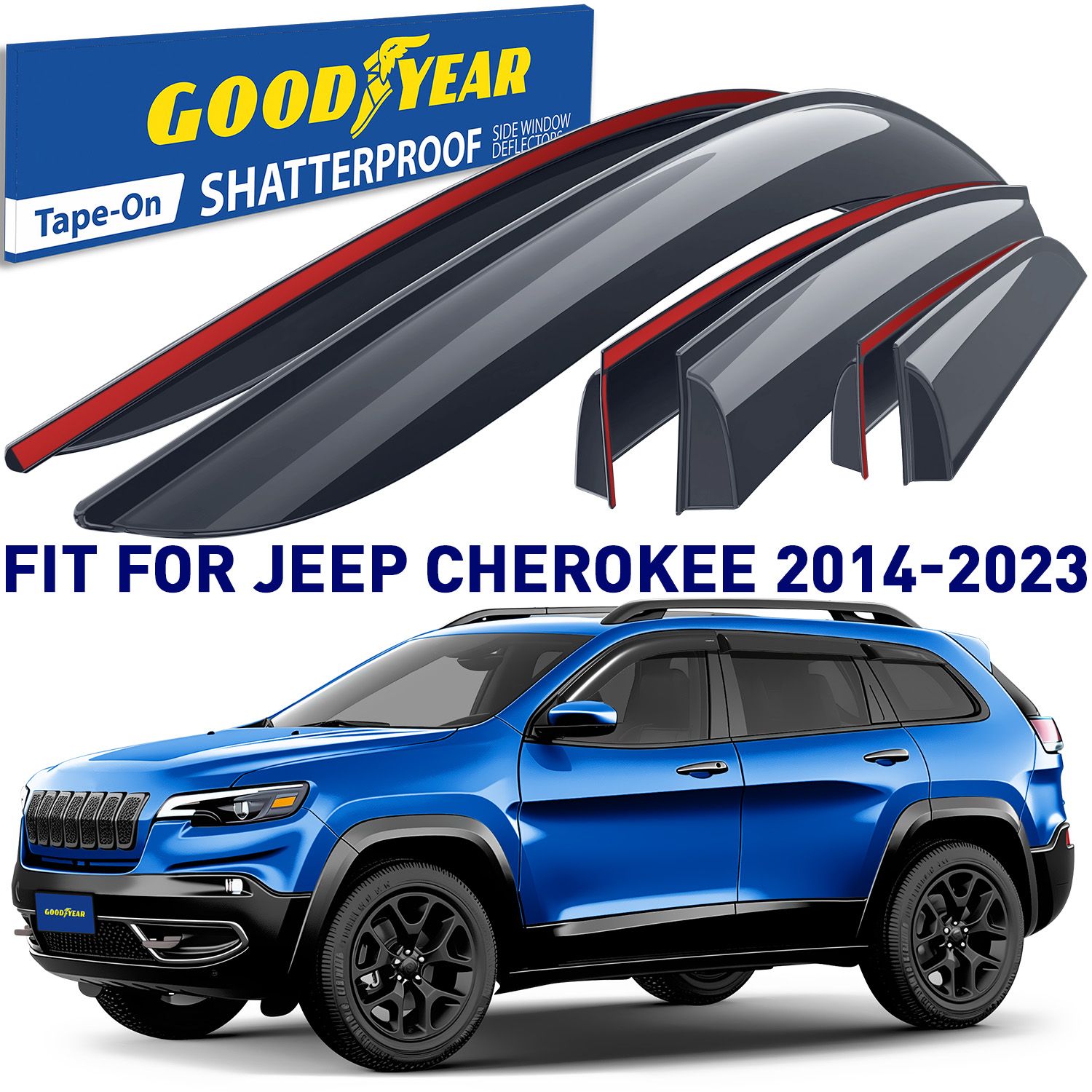 Goodyear Shatterproof Window Deflectors for Jeep Cherokee 2014-2023, Rain Guards, Window Visors for Cars, Vent Deflector, Car Accessories, 6pcs., – GY008694