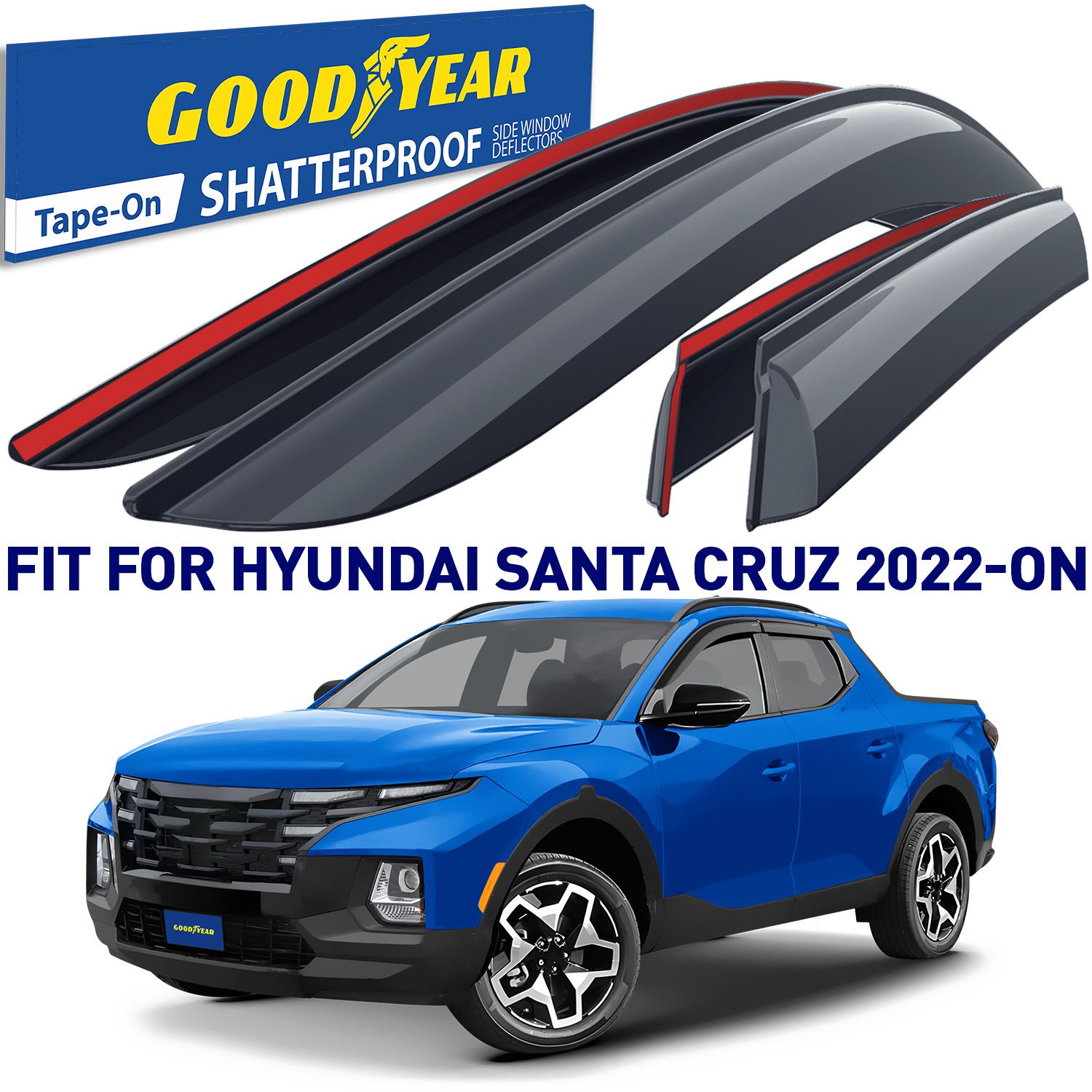 Goodyear Shatterproof Window Deflectors for Hyundai Santa Cruz 2022-2024, Tape-on Rain Guards, Window Visors, Vent Deflector Visor, Car Accessories, 4 pcs. – GY008709