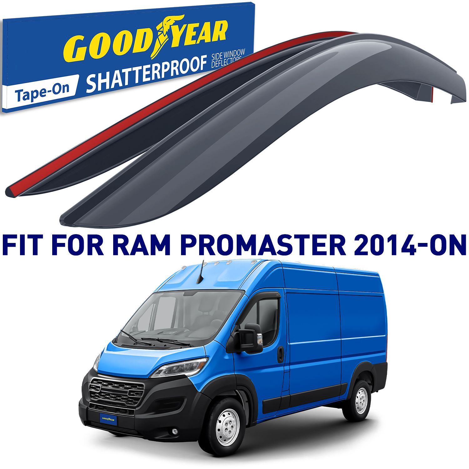 – Car wash friendly. Provides a custom fit: – for Ram ProMaster 2014-2024. Package includes: 2 Front deflectors with 3m vhb tape applied, 2 Rear deflectors with 3m vhb tape applied, 2 Degrease wipes, Installation instructions, Branded Goodyear color box, Protective shipping box. 100% money guarantee ensures this will be your best bet for a pleasing no-risk purchase. Many customers love these Goodyear Window Guards so much they return to buy more. This makes a much appreciated gift for friends, family, and co-workers.