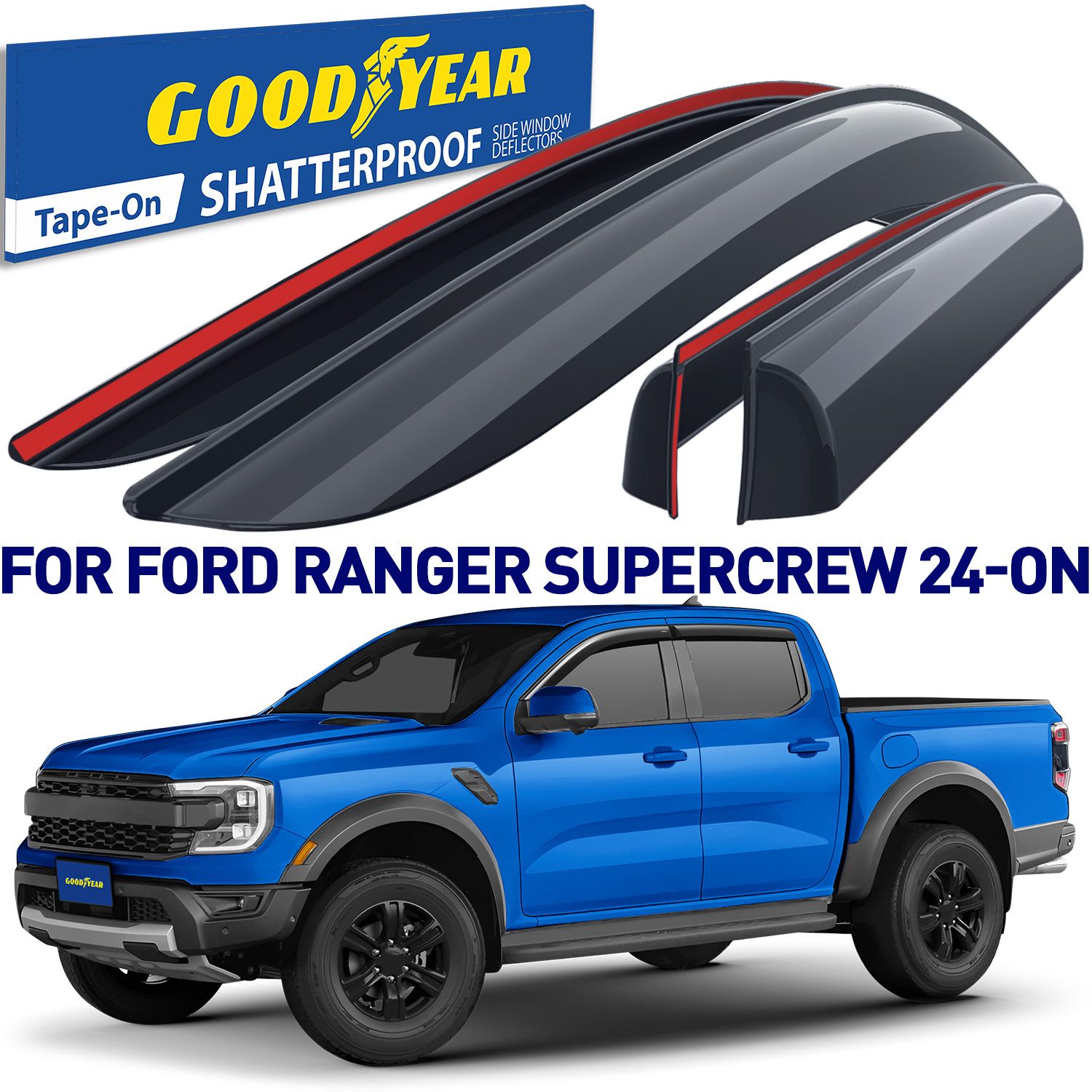 Goodyear Shatterproof Window Deflectors for Ford Ranger 2024-2025 SuperCrew, Rain Guards, Window Visors for Cars, Vent Deflector, Car Accessories, 4pcs., – GY008758
