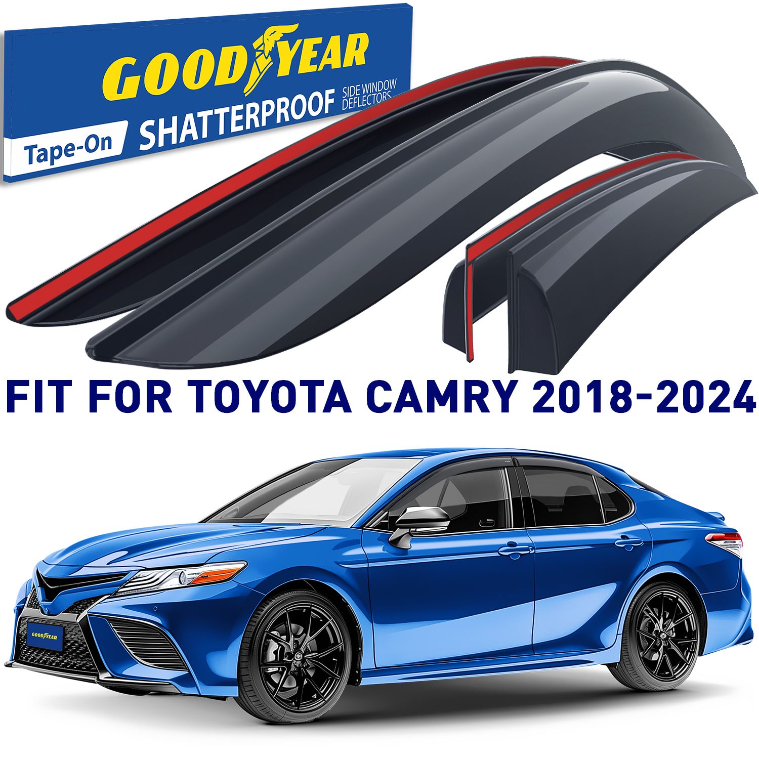 Goodyear Shatterproof Side Window Deflectors for Toyota Camry 2018-2023, Tape-on Rain Guards, Window Visors for Cars, Vent Deflector, Vent Visor, Car Accessories, 4 pcs- GY003125LP