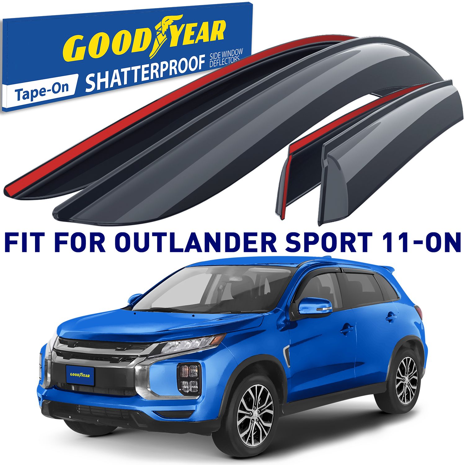 Goodyear Shatterproof Side Window Deflectors for Mitsubishi Outlander Sport 2011-2023, Tape-on Rain Guards, Window Visors for cars, Vent Deflector, Vent Visor, Car Accessories, 4 pcs- GY003155LP
