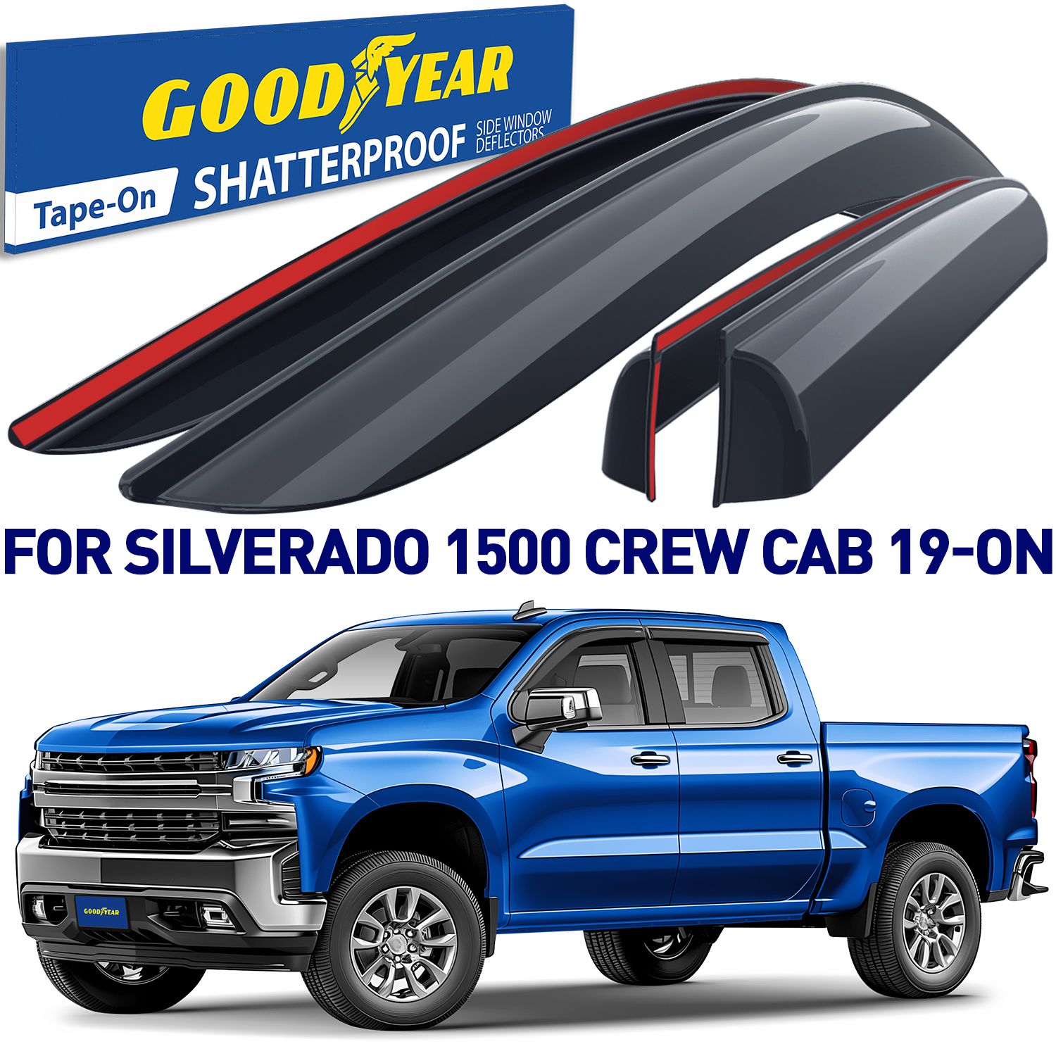 Goodyear Shatterproof Side Window Deflectors for Trucks Chevrolet (Chevy) Silverado 1 500 2019-2023 Crew Cab, Tape-on Rain Guards, Vent Window Visors, Truck Accessories, 4 Pieces – GY003181LP