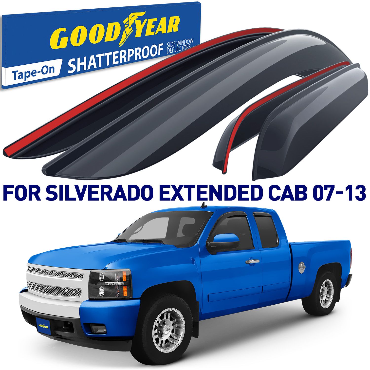 Goodyear Shatterproof Window Deflectors for Trucks Chevrolet Silverado/GMC Sierra 2007-2013 Extended Cab, Tape-on Rain Guards, Window Visors, Vent Deflector Visor, Truck Accessories, 4 pcs- GY003194LP