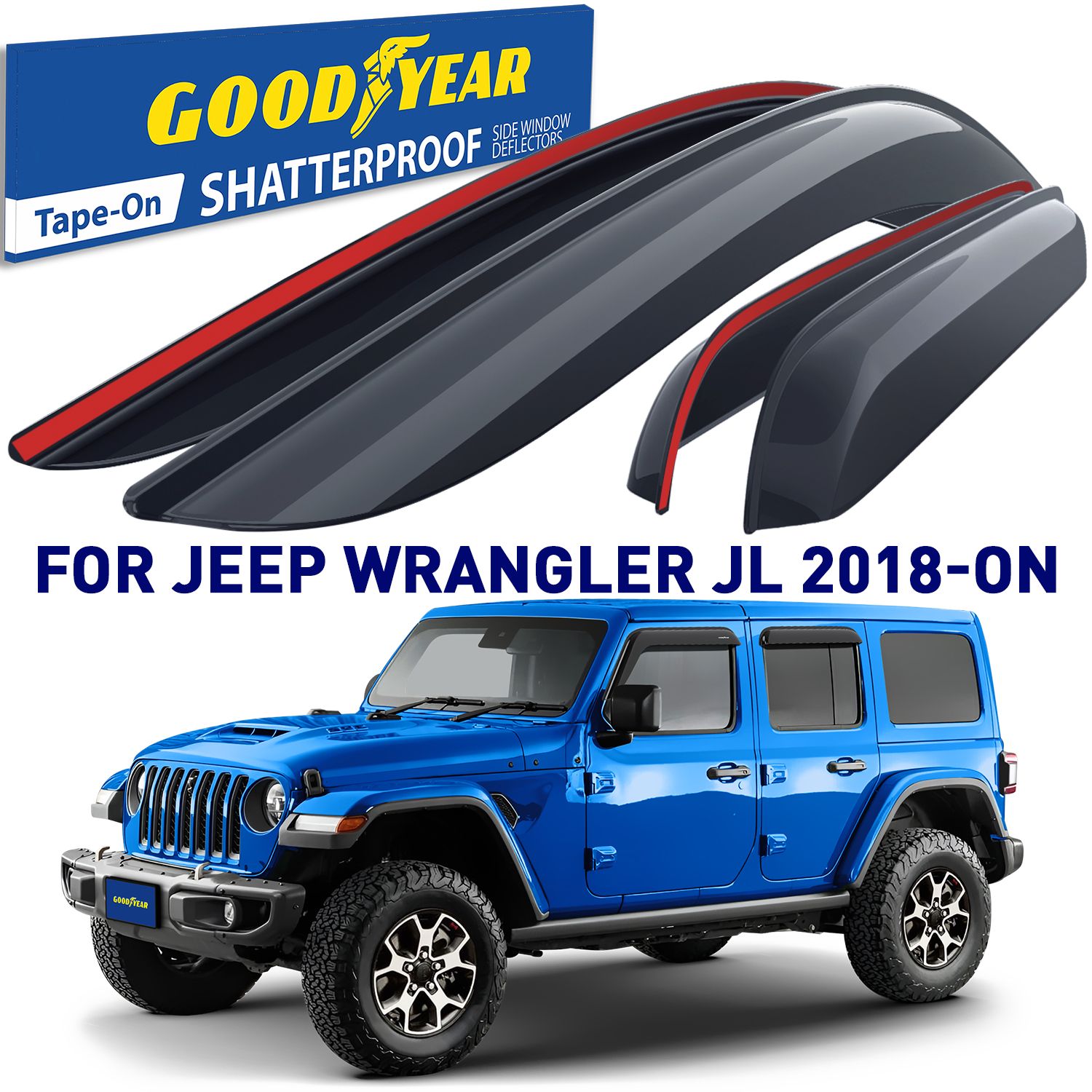 Goodyear Shatterproof Side Window Deflectors for Jeep Wrangler 2018-2023, Tape-on Rain Guards, Window Visors, Vent Deflector, Vent Visor, Car Accessories, 4 Pieces – GY003198LP