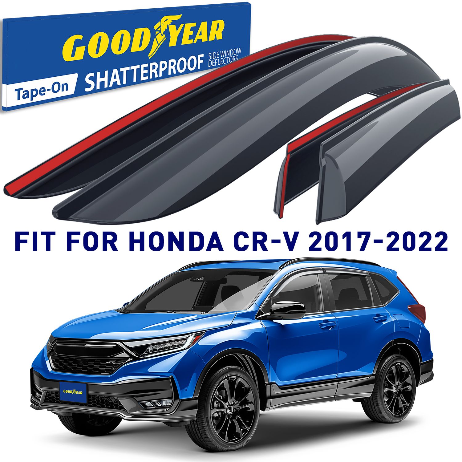 Goodyear Shatterproof Side Window Deflectors for Honda CR-V 2017-2022, Tape-on Rain Guards, Window Visors for Cars, Vent Deflector, Vent Visor, Car Accessories, 4 pcs. – GY003236LP