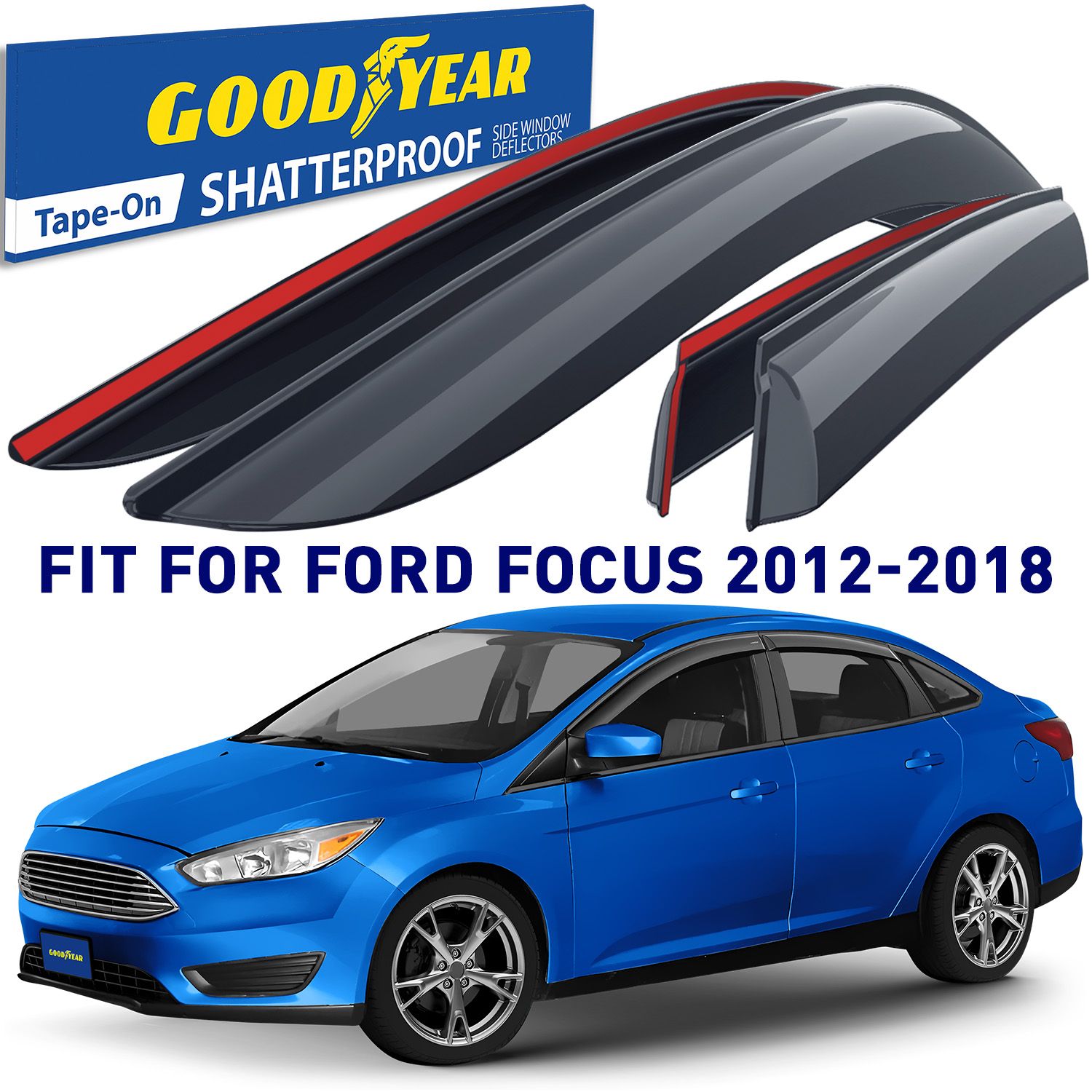 Goodyear Shatterproof Side Window Deflectors for Ford Focus 2012-2018, Tape-on Rain Guards, Window Visors for Cars, Vent Deflector, Vent Visor, Car Accessories, 4 pcs- GY003237LP