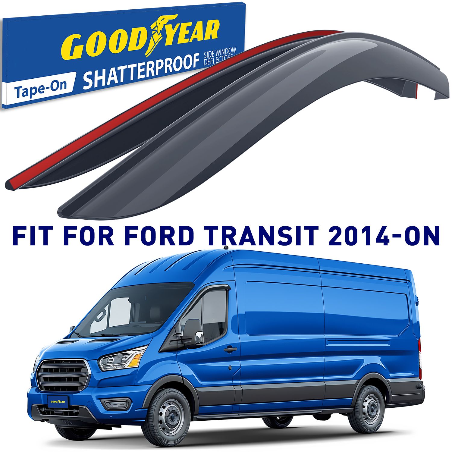 Goodyear Shatterproof Window Deflectors for Ford Transit 2014-2023, Tape-on Rain Guards, Window Visors, Vent Deflector, Vent Visor, Car Accessories, 2pcs – GY003242LP