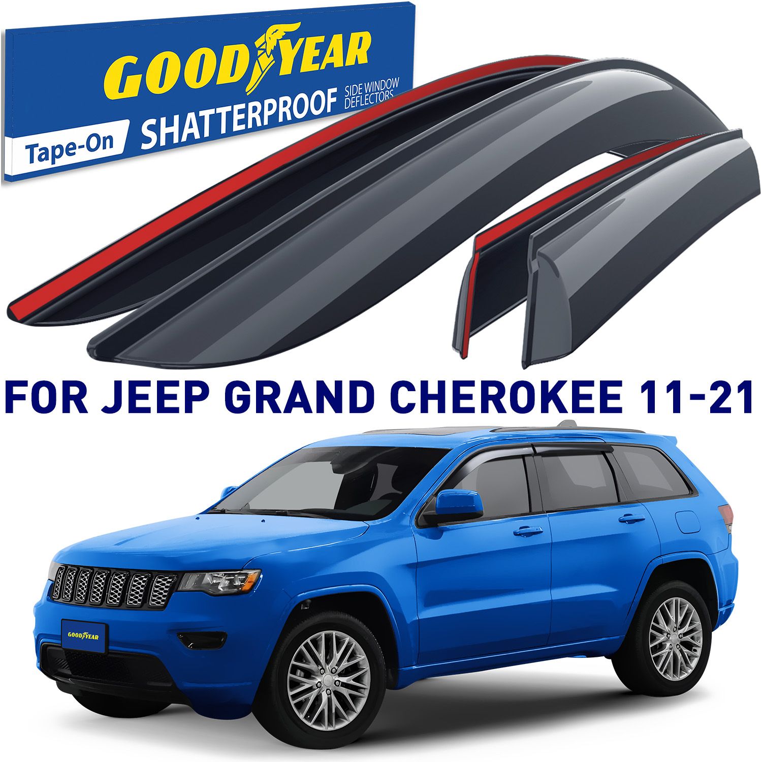 Goodyear Shatterproof Side Window Deflectors for Jeep Grand Cherokee 2011-2020, Tape-on Rain Guards, Window Visors for Cars, Vent Deflector, Vent Visor, Car Accessories, 4 pcs. – GY003255LP