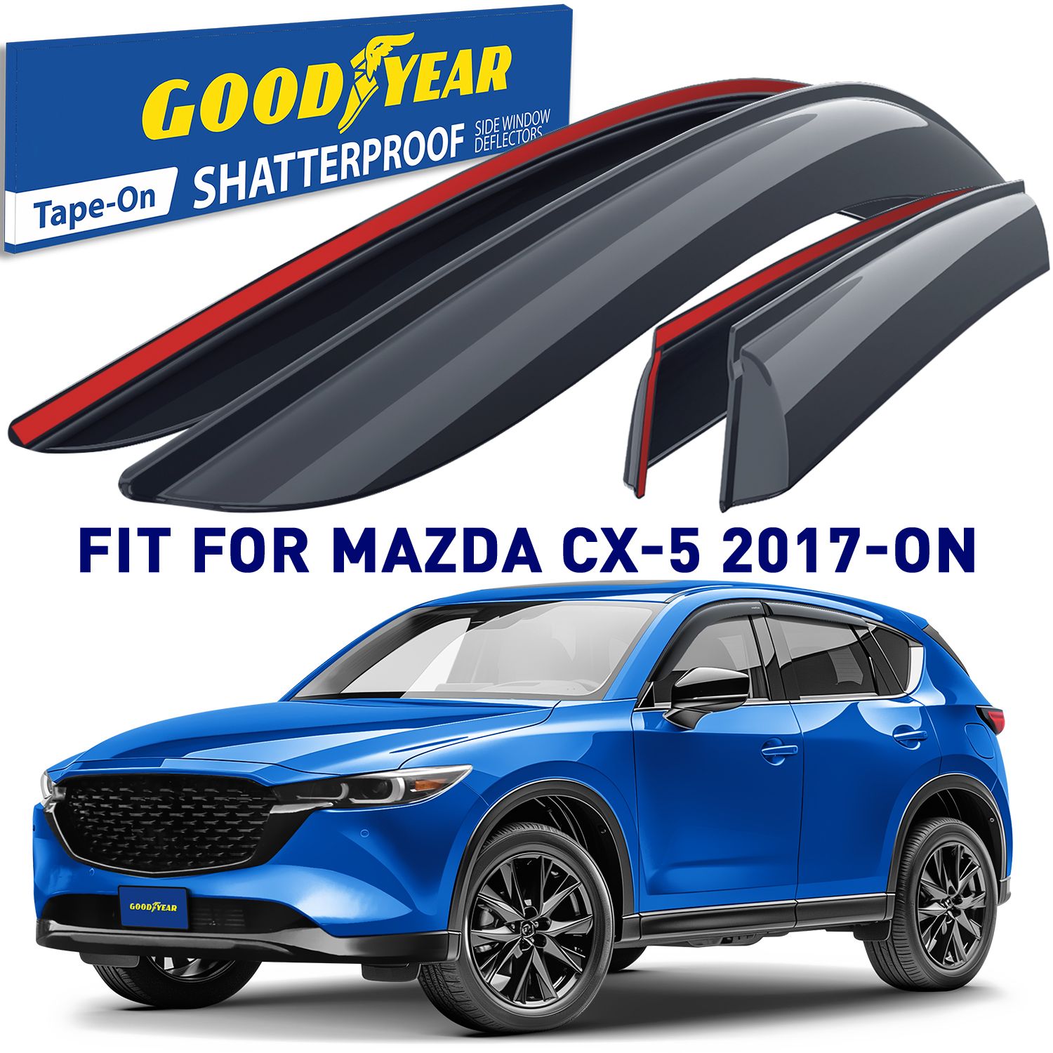 Goodyear Shatterproof Window Deflectors for Mazda CX-5 2017-2023, Tape-on Rain Guards, Window Visors, Vent Deflector Visor, Car Accessories, 4 pcs. – GY003261
