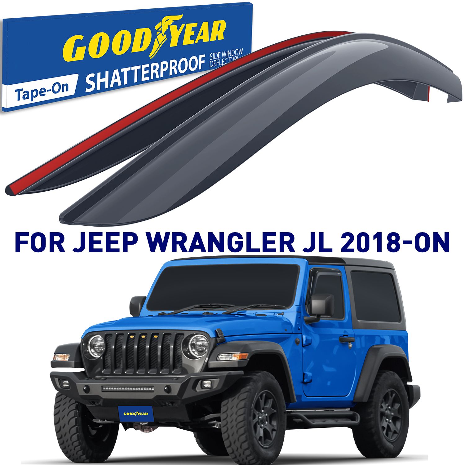 Goodyear Shatterproof Window Deflectors for Jeep Wrangler 2018-2023 JL/Jeep Gladiator 2020-2023, Tape-on Rain Guards, Window Visors, Vent Deflector Visor, Car Accessories, 2 pcs. – GY008527
