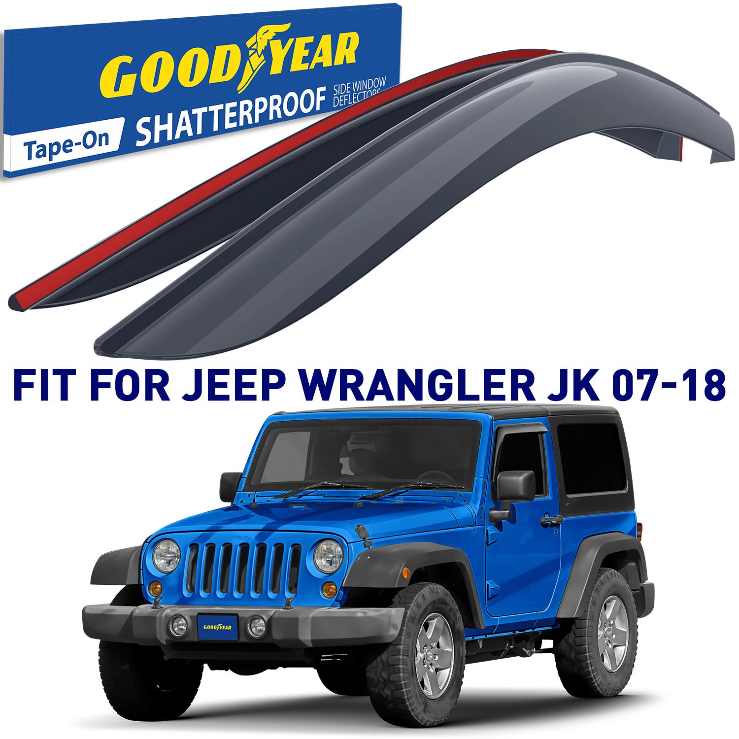 Goodyear Shatterproof Window Deflectors for Jeep Wrangler 2007-2018, Tape-on Rain Guards, Window Visors, Vent Deflector Visor, Car Accessories, 2 pcs. – GY008530