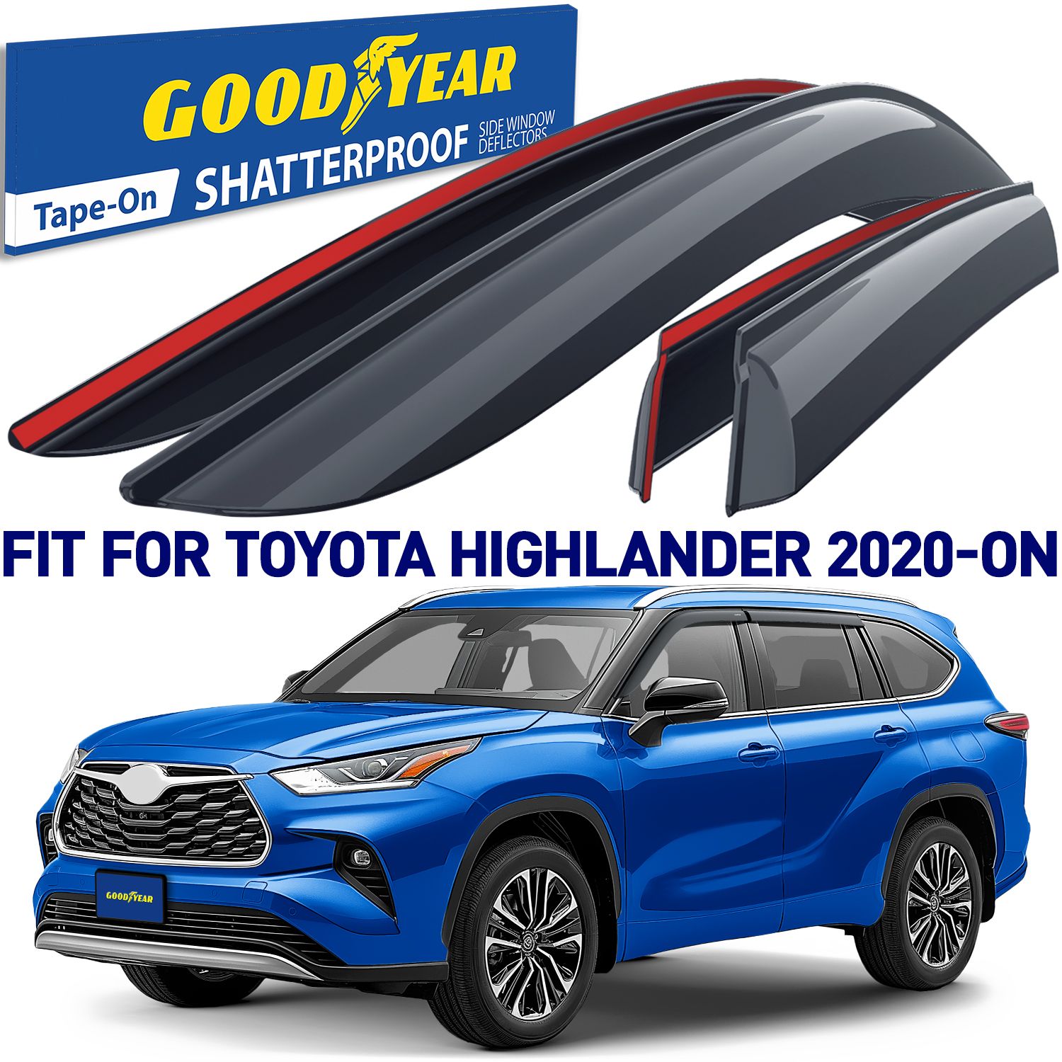 Goodyear Shatterproof Window Deflectors for Toyota Highlander 2020-2023, Tape-on Rain Guards, Window Visors, Vent Deflector Visor, Car Accessories, 6 pcs. – GY008600