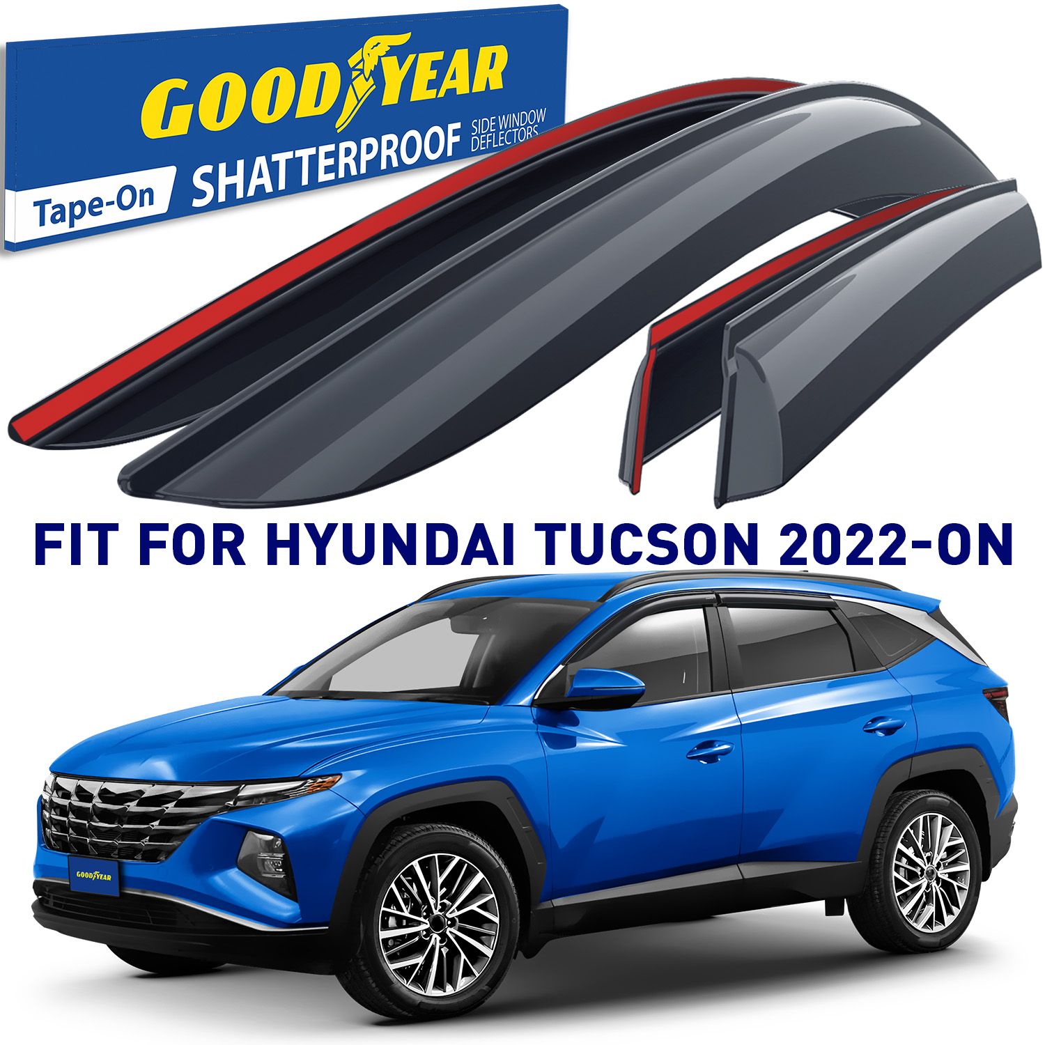 Goodyear Shatterproof Window Deflectors for Hyundai Tucson 2021-2023, Tape-on Rain Guards, Window Visors, Vent Deflector Visor, Car Accessories,6 pcs. – GY008605