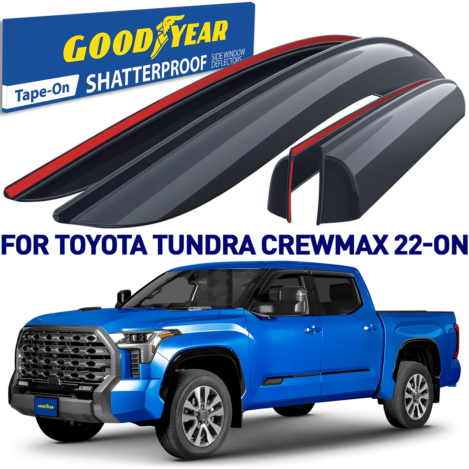 Goodyear Shatterproof Window Deflectors for Toyota Tundra 2022-2023 CrewMax, Tape-on Rain Guards, Window Visors, Vent Deflector Visor, Car Accessories,4 pcs. – GY008611