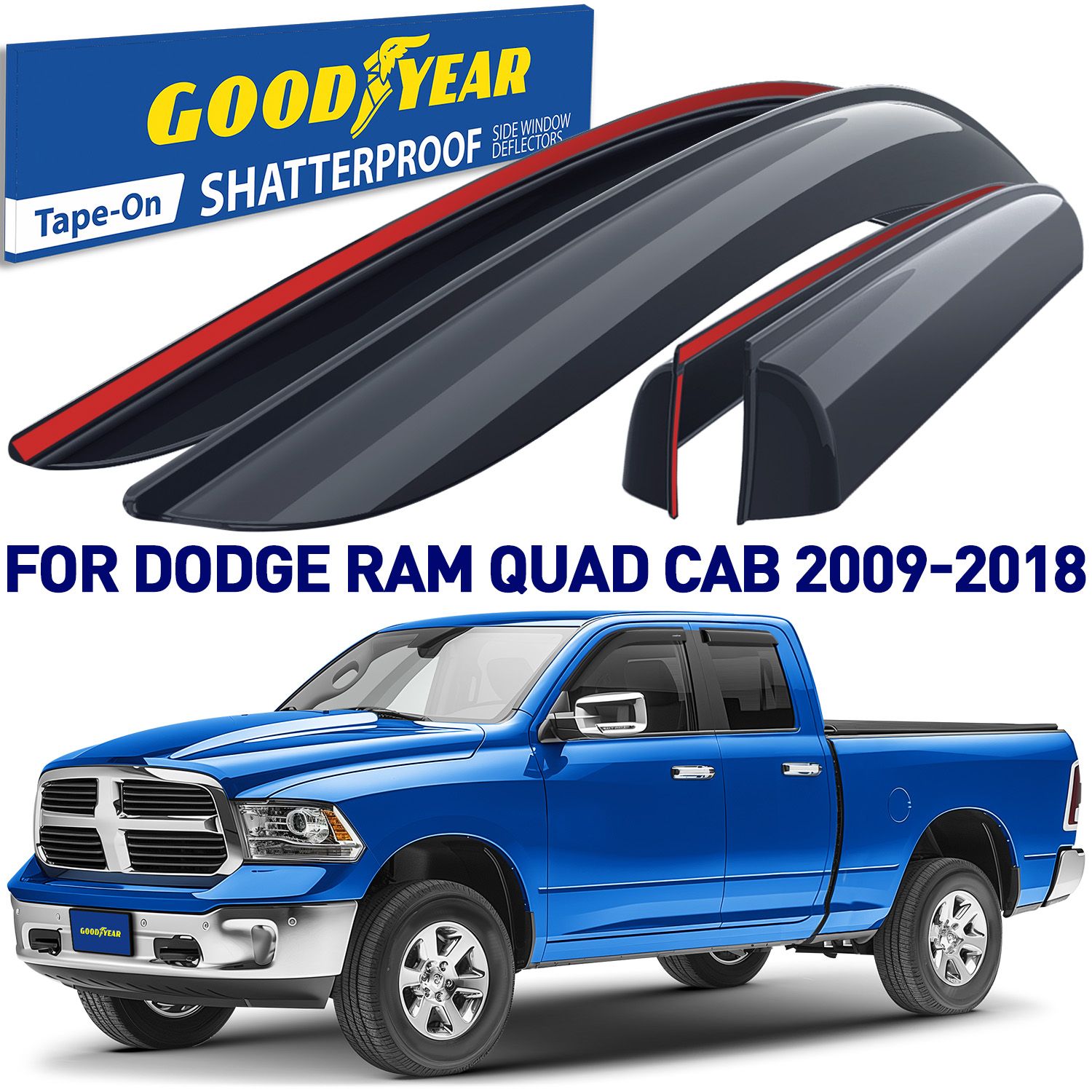Goodyear Shatterproof Window Deflectors for Trucks Dodge Ram 2009-2018 1500 Quad Cab, Tape-on Rain Guards, Window Visors, Vent Deflector Visor, Truck Accessories, 4 pcs. – GY003107LP