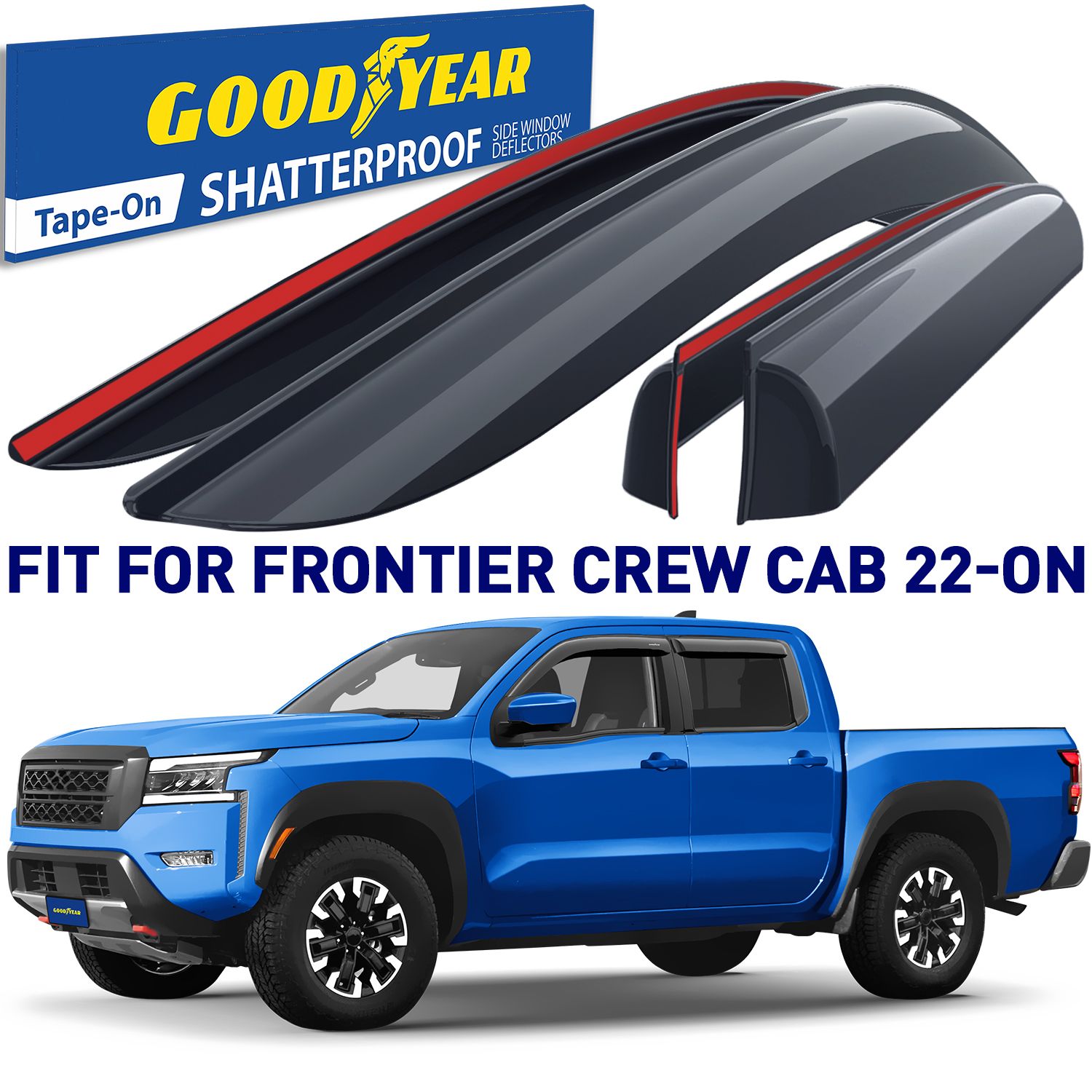 Goodyear Shatterproof Window Deflectors for Nissan Frontier 2022-2023 Crew Cab, Tape-on Rain Guards, Window Visors, Vent Deflector Visor, Car Accessories, 4 pcs. – GY008645
