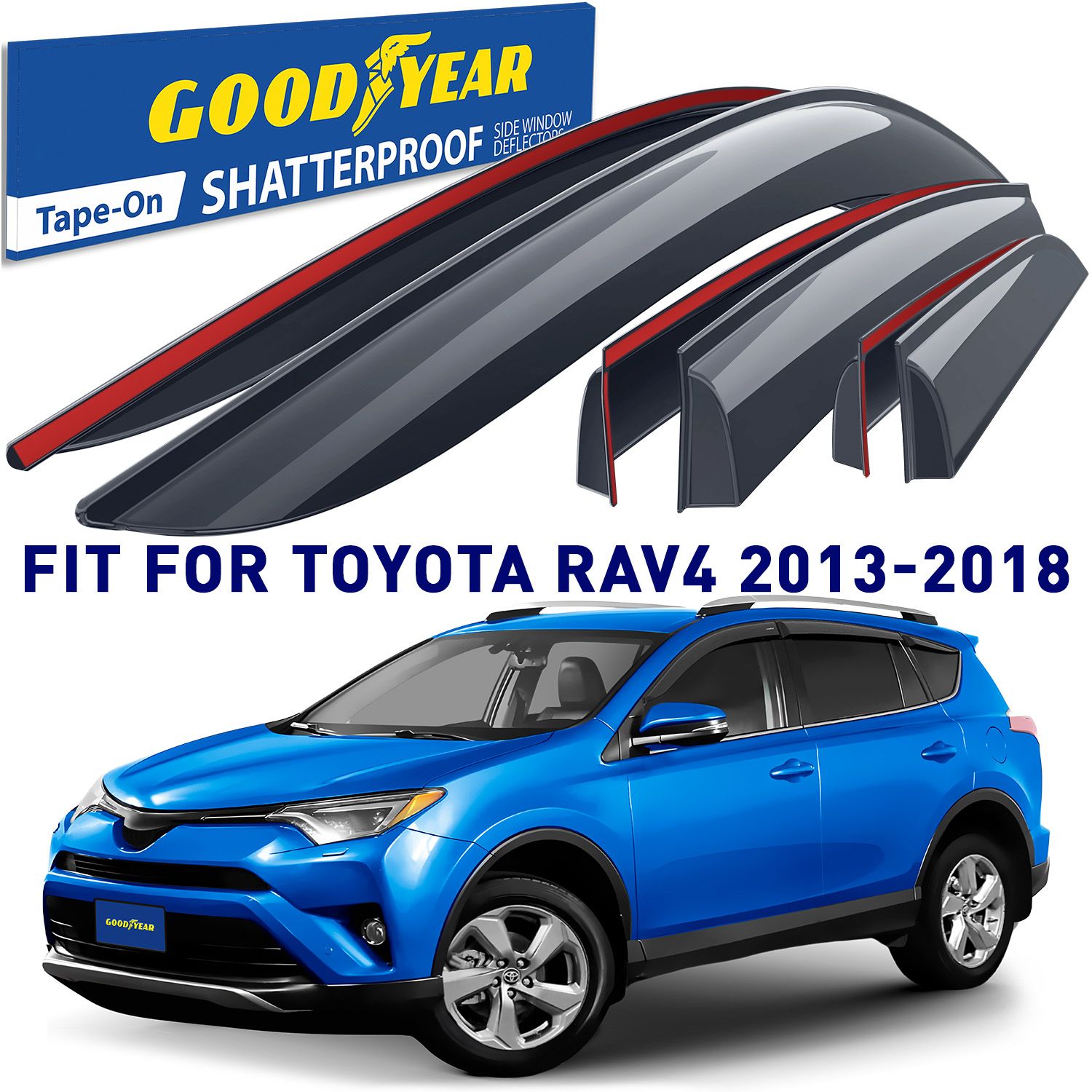 Goodyear Shatterproof Window Deflectors for Toyota RAV4 2013-2018, Tape-on Rain Guards, Window Visors, Vent Deflector Visor, Car Accessories,6 pcs. – GY008656