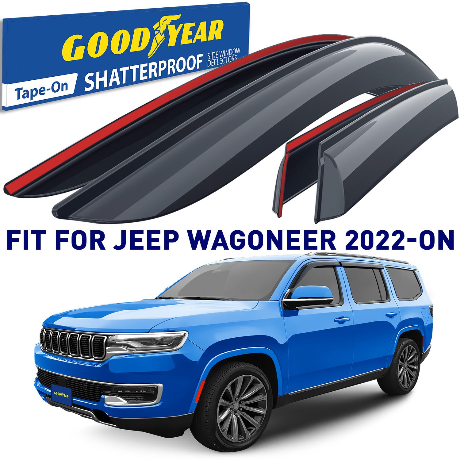 Goodyear Shatterproof Window Deflectors for Jeep Wagoneer 2022-2024, Tape-on Rain Guards, Window Visors, Vent Deflector Visor, Car Accessories, 4 pcs. – GY008658