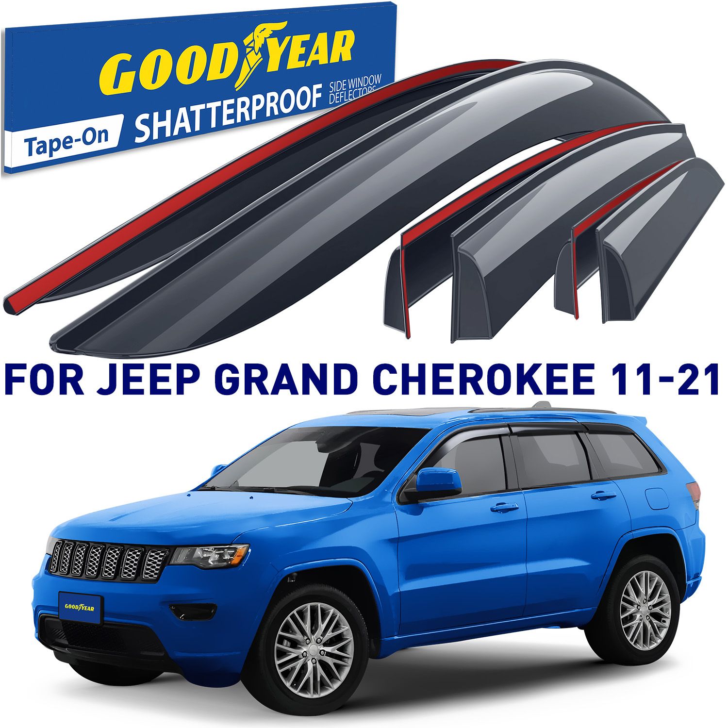 Goodyear shatterproof Window Deflectors for Jeep Grand Cherokee 2011-2020, Tape-on Rain Guards, Window Visors, Vent Deflector Visor, Car Accessories, 6 pcs. – GY008662