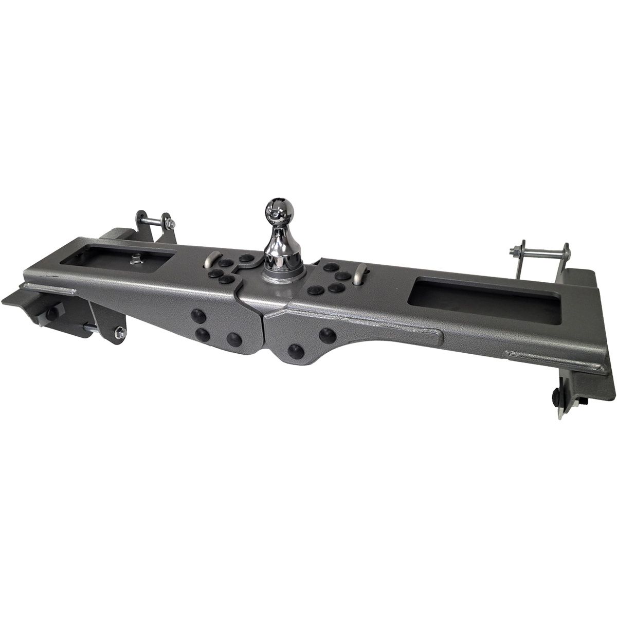 Husky Towing offers a vehicle specific underbed gooseneck hitch for trucks without the OEM prep package. The center section bolts directly to the factory crossmember without the need for additional mounting rails and only requires drilling for safety chain loops and center cup hole. Hitch includes 2-5/16 Inch Gooseneck Ball rated at 35K and is removable to allow for full bed access.