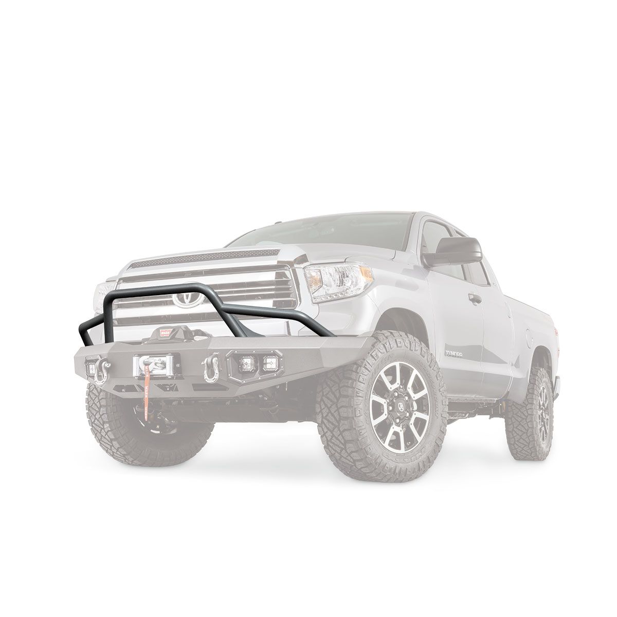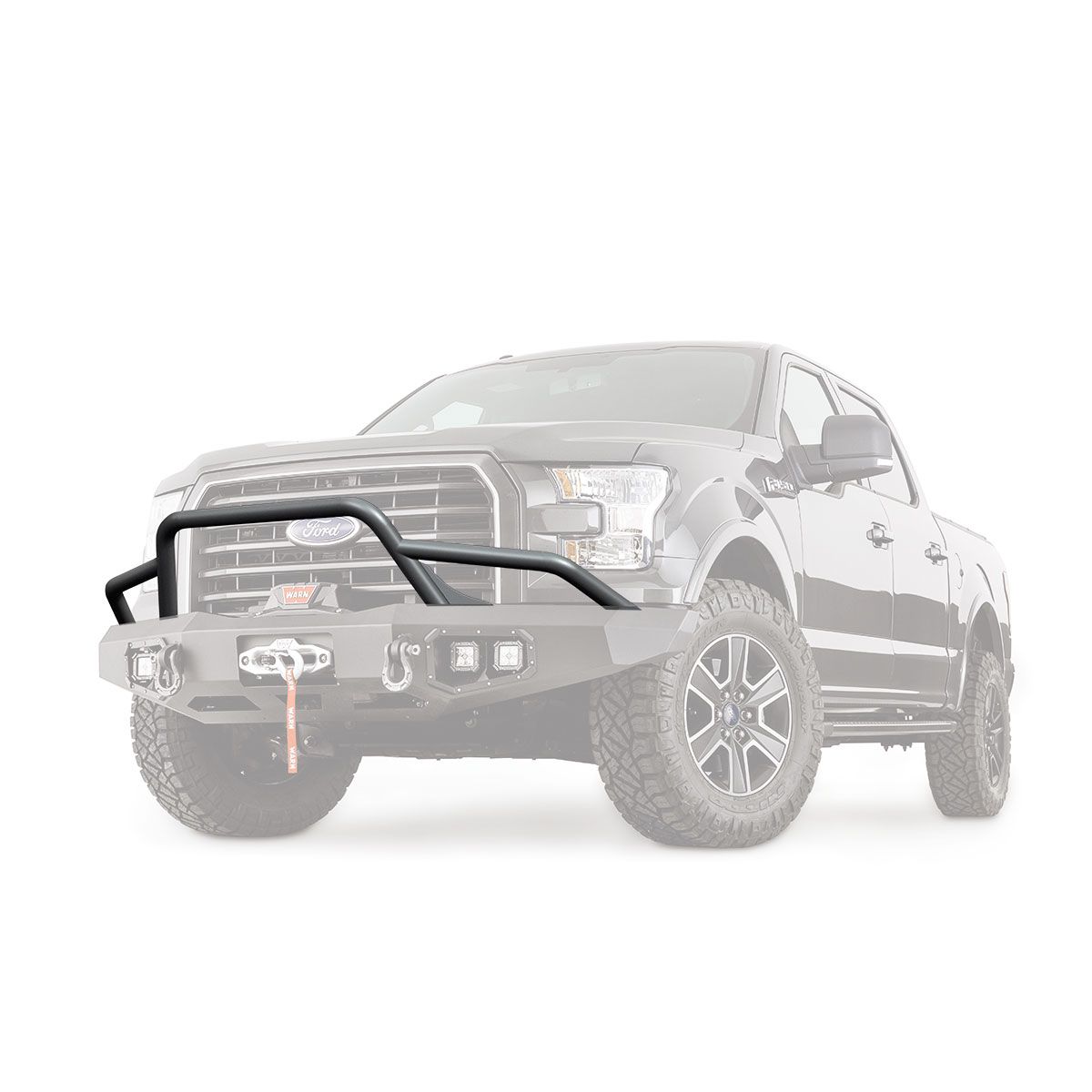 The Baja Grille guard (push bar) bolts onto a Warn Ascent front bumper for style and functionality.?