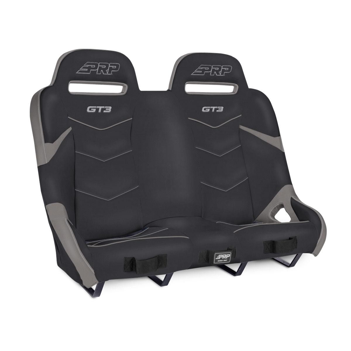 Add an extra space into the rear of your Polaris RZR with PRP Seats GT3 Rear Suspension Bench Seat. The GT3 bench matches the style of our best-selling GT3 seat and converts your RZR to a 5 seat. The bench can comfortably fit 3 smaller riders, and has the slots to run 3 harnesses. Medium level containment on the sides keeps you secure when the ride gets rough, but still makes it easy to get in & out of the vehicle. So you can drive with confidence that you'll stay secure in your seat no matter what the trails throw at you. Add more comfort to your ride! The vinyl-coated nylon suspension liner and dual-density foam decrease the impact on the body, reducing the fatigue you feel after a long day in the dirt or dunes. So you can drive farther in rough terrain with more comfort. In the bottom of the seat is PRP's standard mesh drain that allows water, mud, sand, and dirt to drain out the bottom, rather than pile up in the seat. Improve your ride! Upgrade to the most popular aftermarket UTV suspension seat! Made from durable and UV resistant vinyl. Don't forget to complete your UTV interior! Get a set of matching GT3 Front Seats. Or add more storage to your UTV with PRP's UTV Storage Bags. Proudly Made in the USA. Fitment – This Rear Benches is specifically designed to fit in the back of (2015-2023) Polaris RZR S4 900, RZR XP4 1000, XP4 Turbo, or XP4 Turbo S. The bench is 3" shorter depth than the fronts, to allow for more legroom. Bolts directly to the OEM plastic seat bases (so it can be easily removed for cleaning). No additional mounts required.