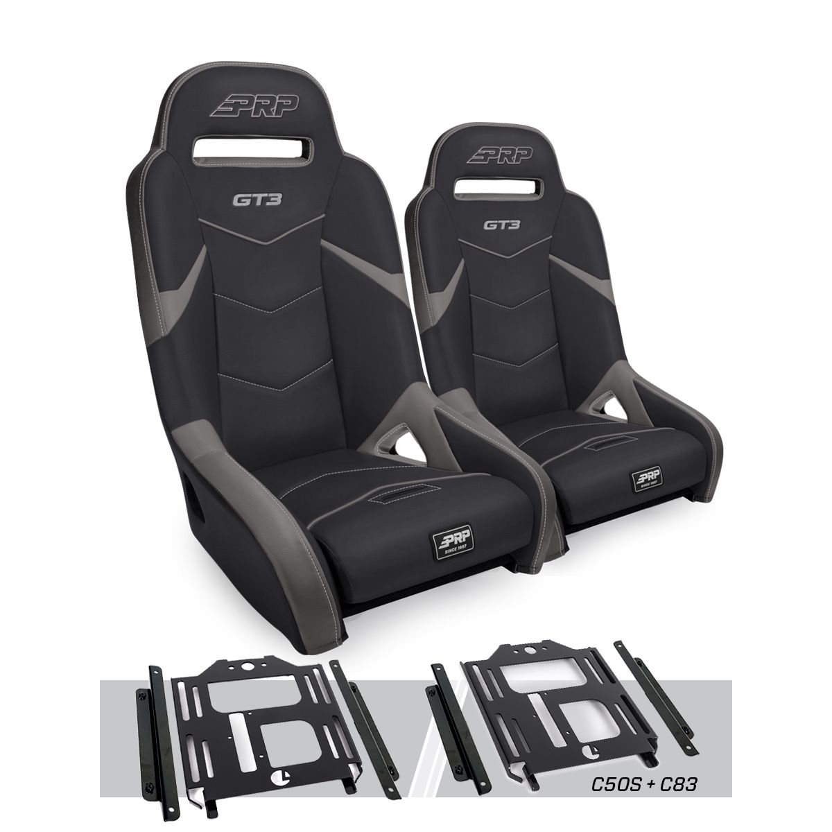 EXT: GT3 Suspension Seats Kit for Polaris RZR 570, 800, 900 (Pair), Black & Grey