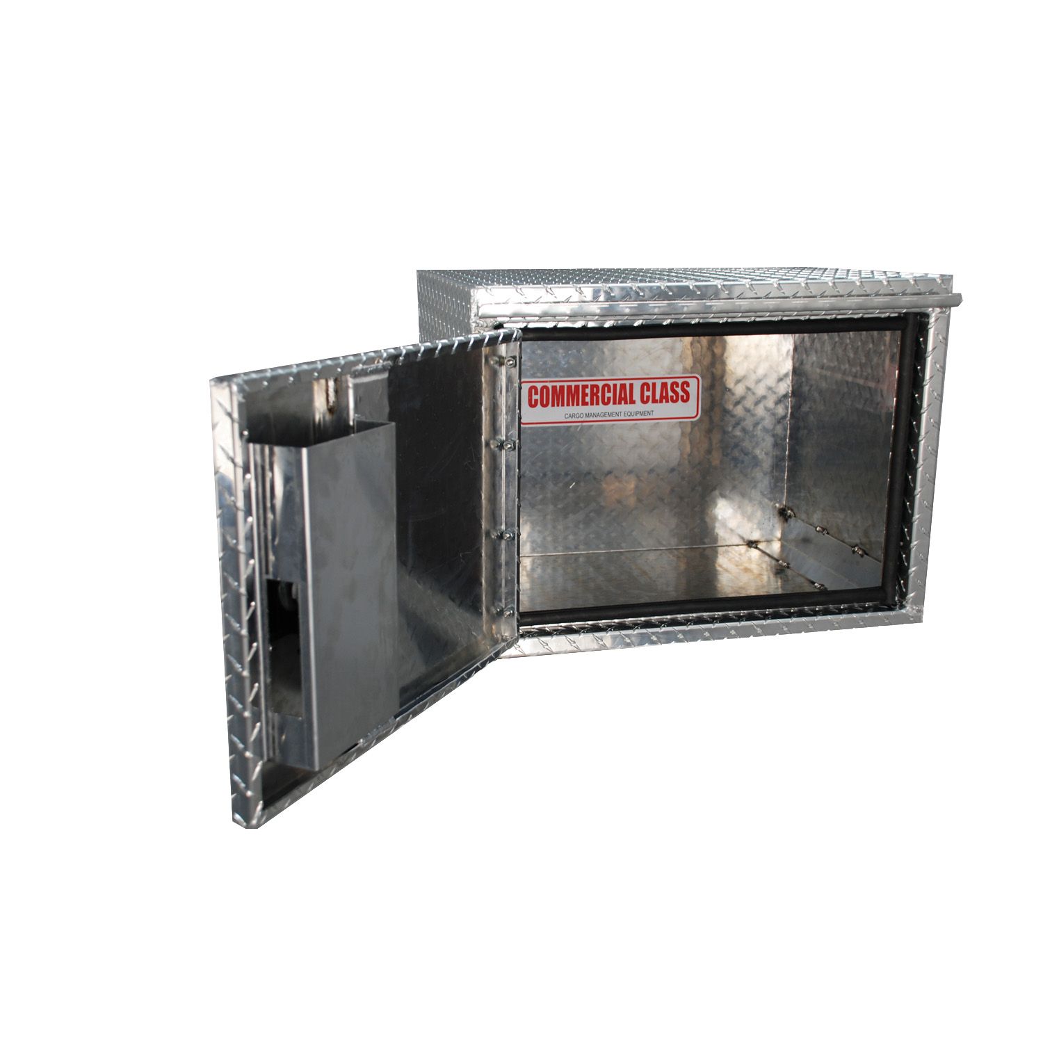 18" x 18" x 24"L HD Under Body, swing door; .100 Thick Diamond Tread Aluminum Construction; .125 Thick Smooth Aluminum Bottom Corner Reinforcement; Welded Gussets in Door Frame Corners; Three Point Latches Standard on 36/48/60" Models