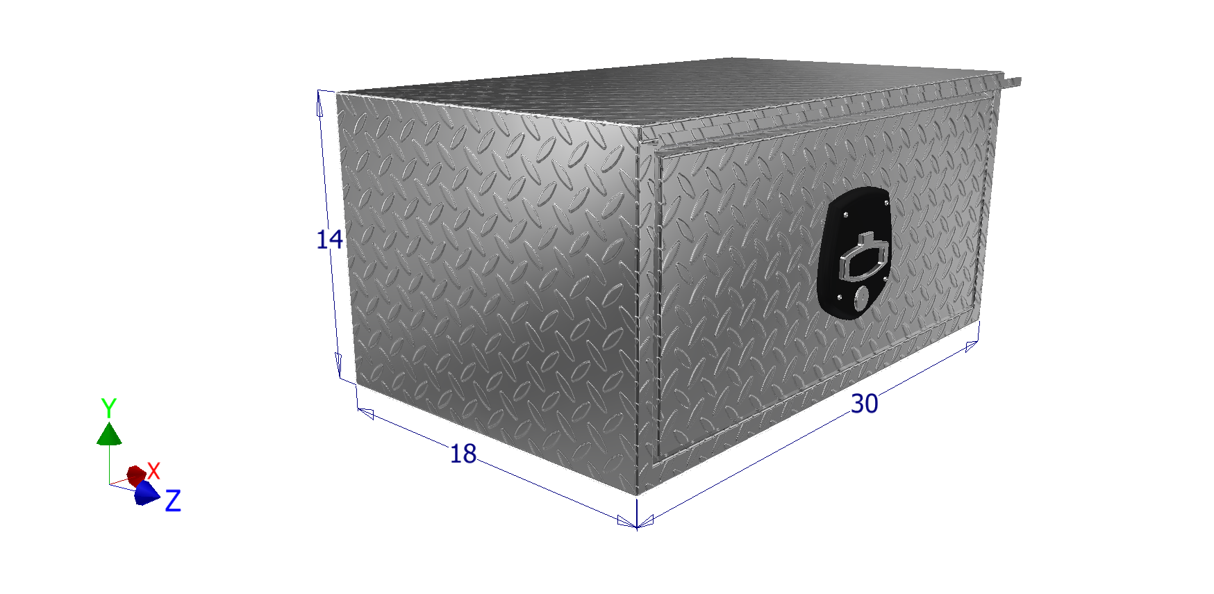 18" x 14" x 30" Single Drawer Under Body, .100" Thick Diamond Tread Aluminum Construction; .080" Smooth Aluminum Drawer Interiors; Drawer with Adjustable Dividers; Full Wrap One Piece Body Design; Full HD Aluminum Lock Cover Protection