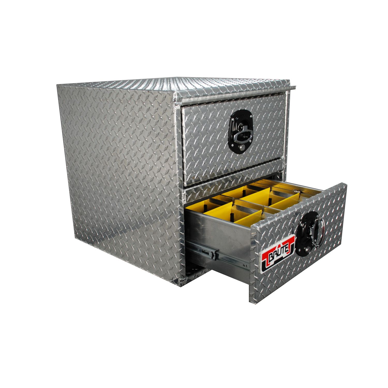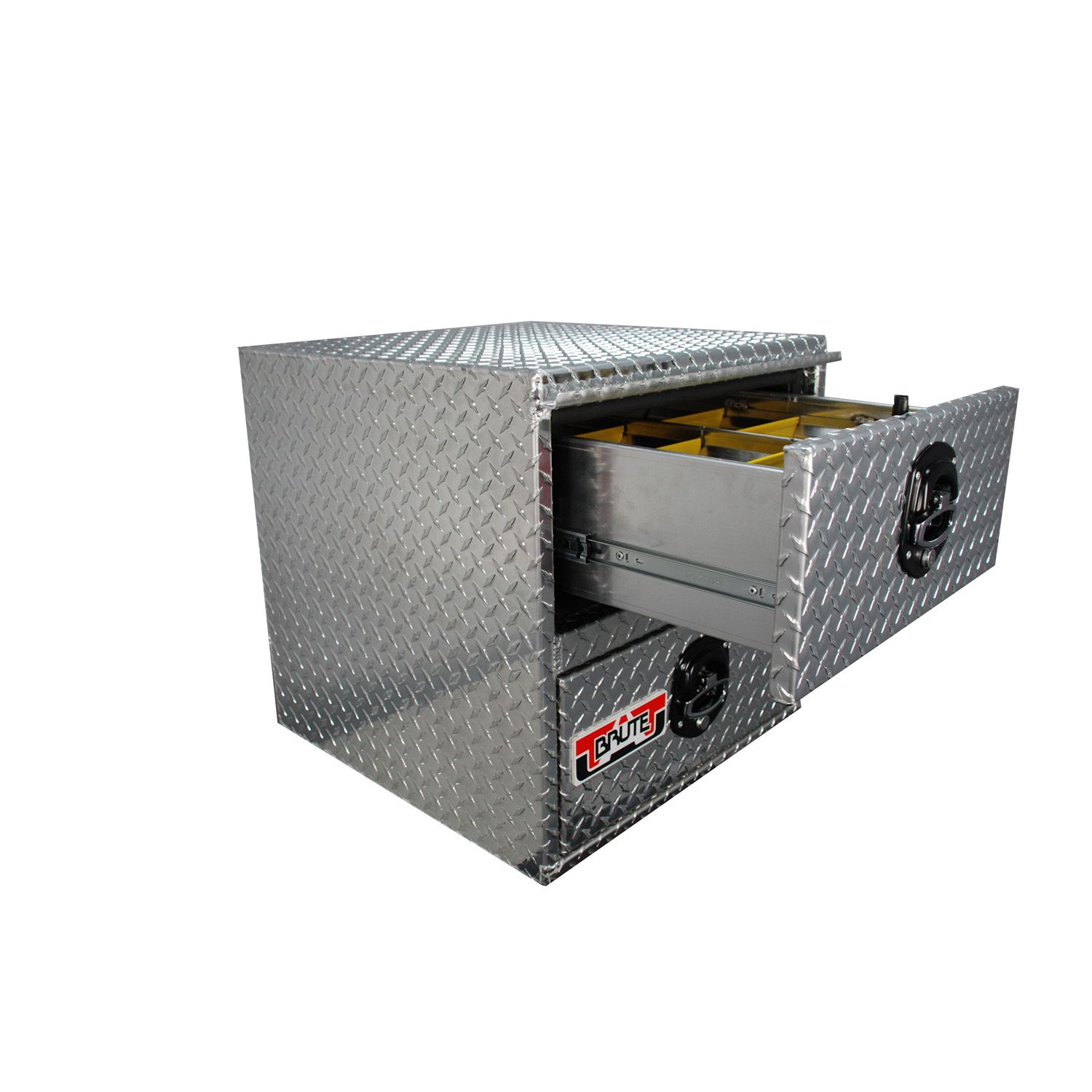 24" x 24" x 24"L HD Under Body w/Top Drawer & Button Door; .100" Diamond Tread Aluminum; .125 Smooth Aluminum Bottom Corner Reinforcement; .080" Smooth Aluminum Drawer Interiors; Full Wrap One Piece Body Design; HD Aluminum Lock Cover