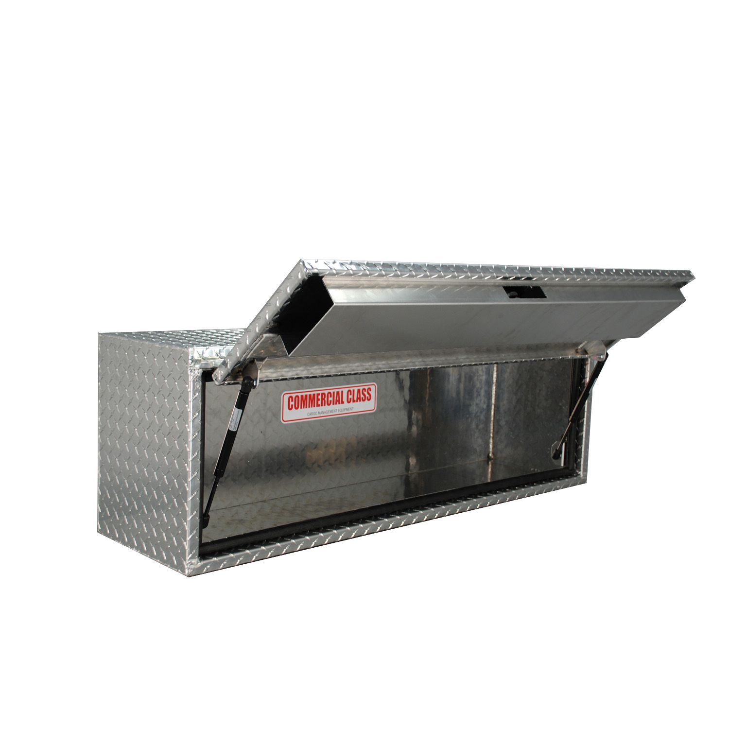 13" x 16" x 48"L HD Top Sider w/flip up door; .100" Diamond Tread Aluminum; Welded Gussets; Gas Shocks; Free Turning Handle when Locked; Full Wrap One Piece Body Design; Full HD Aluminum Lock Cover Protection; Mounting Hardware Included