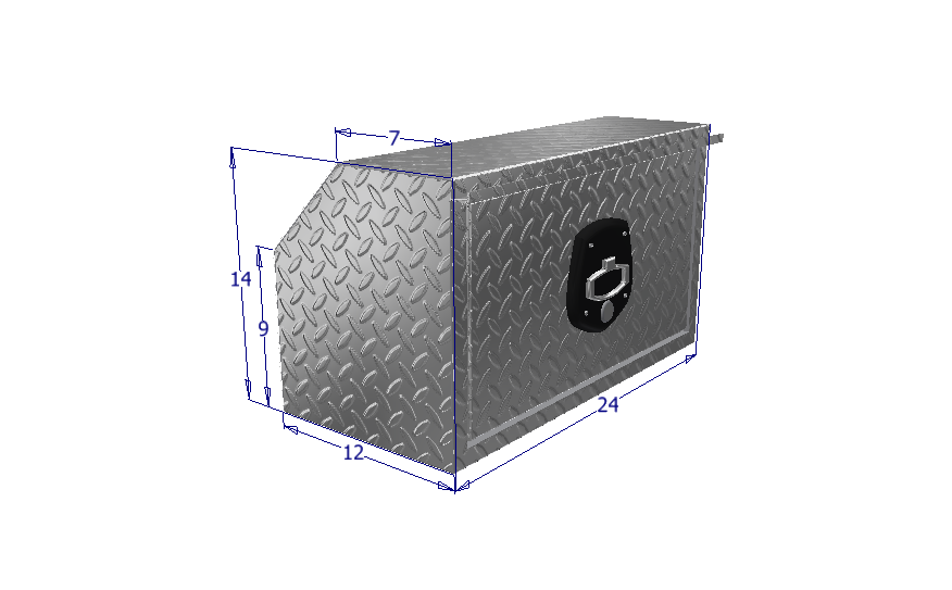 12" x 14" x 24"L HD Under Body, drop down door; .100" Diamond Tread Aluminum; .125" Smooth Aluminum Bottom Corner Reinforcement; Welded Gussets; Full Wrap One Piece Body; Full HD Aluminum Lock Cover Protection; Mounting Hardware Included