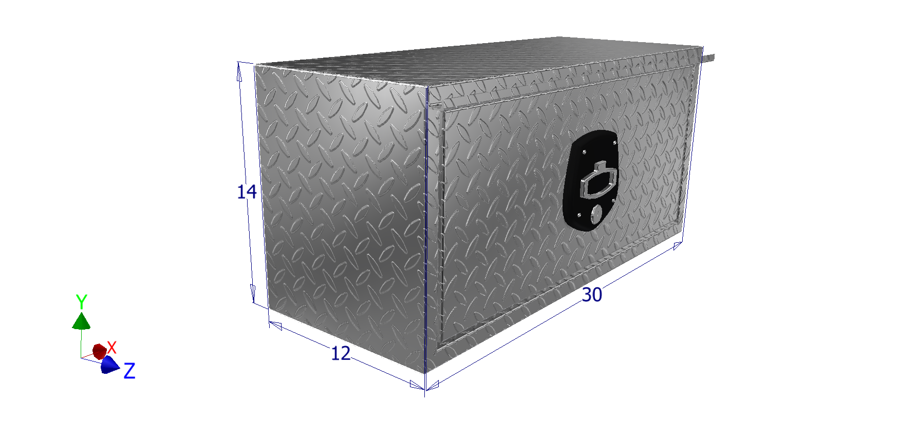12" x 14" x 30"L HD Under Body, drop down door; .100" Diamond Tread Aluminum; .125" Smooth Aluminum Bottom Corner Reinforcement; Welded Gussets; Full Wrap One Piece Body; Full HD Aluminum Lock Cover Protection; Mounting Hardware Included
