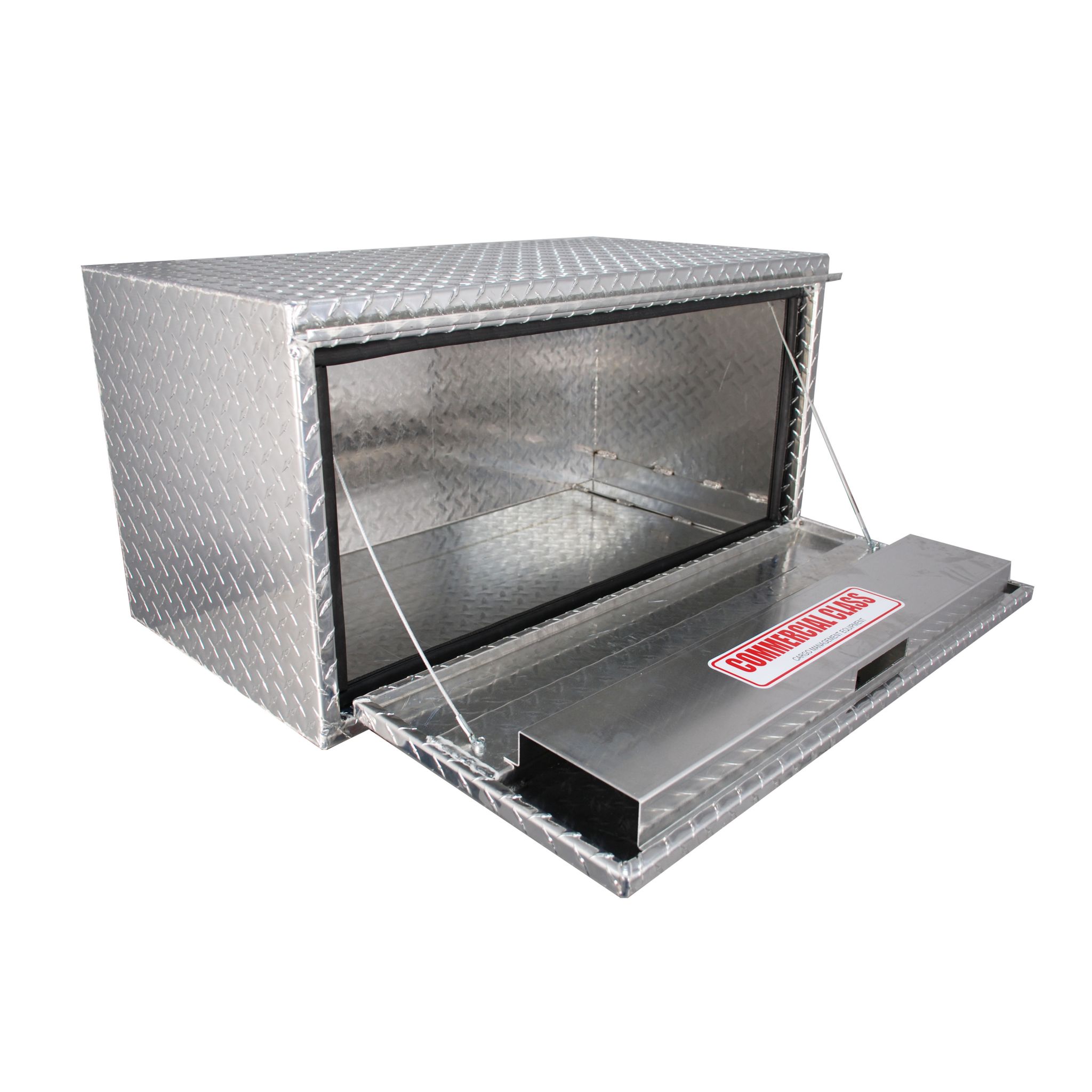 18" x 18" x 36"L HD Under Body, drop down door; .100" Diamond Tread Aluminum; .125" Smooth Aluminum Bottom Corner Reinforcement; Welded Gussets; Full Wrap One Piece Body; Full HD Aluminum Lock Cover Protection; Mounting Hardware Included