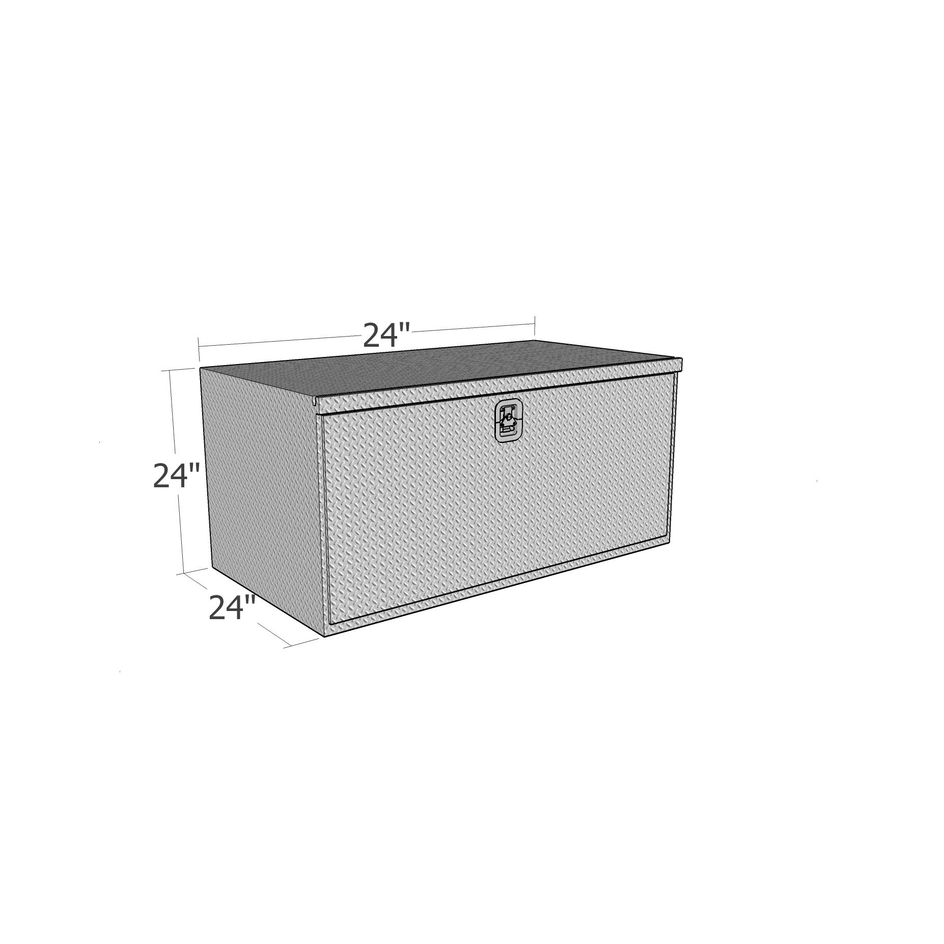 24" x 24" x 24"L HD Under Body, drop down door; .100" Diamond Tread Aluminum; .125" Smooth Aluminum Bottom Corner Reinforcement; Welded Gussets; Full Wrap One Piece Body; Full HD Aluminum Lock Cover Protection; Mounting Hardware Included