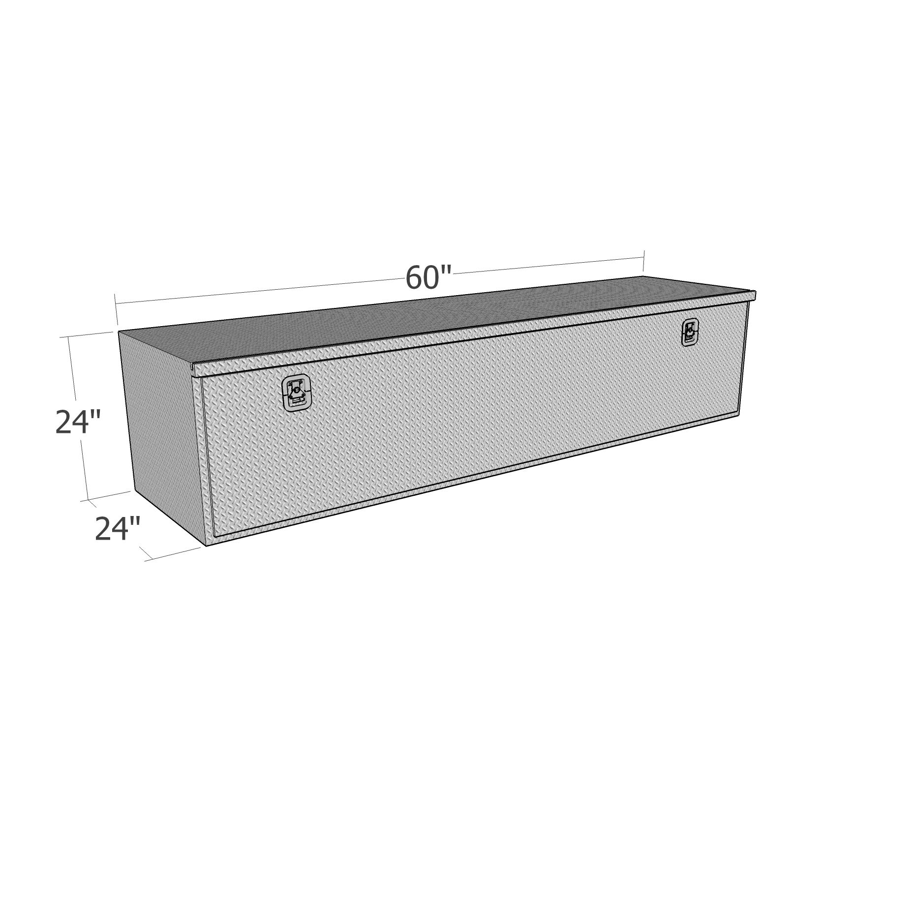 24"x24"x60"L HD Under Body, drop down door; .100" Diamond Tread Aluminum; .125" Smooth Aluminum Bottom Corner Reinforcement; Welded Gussets; Full Wrap One Piece Body; Full HD Aluminum Lock Cover; Mounting Hardware Included, Black Texture
