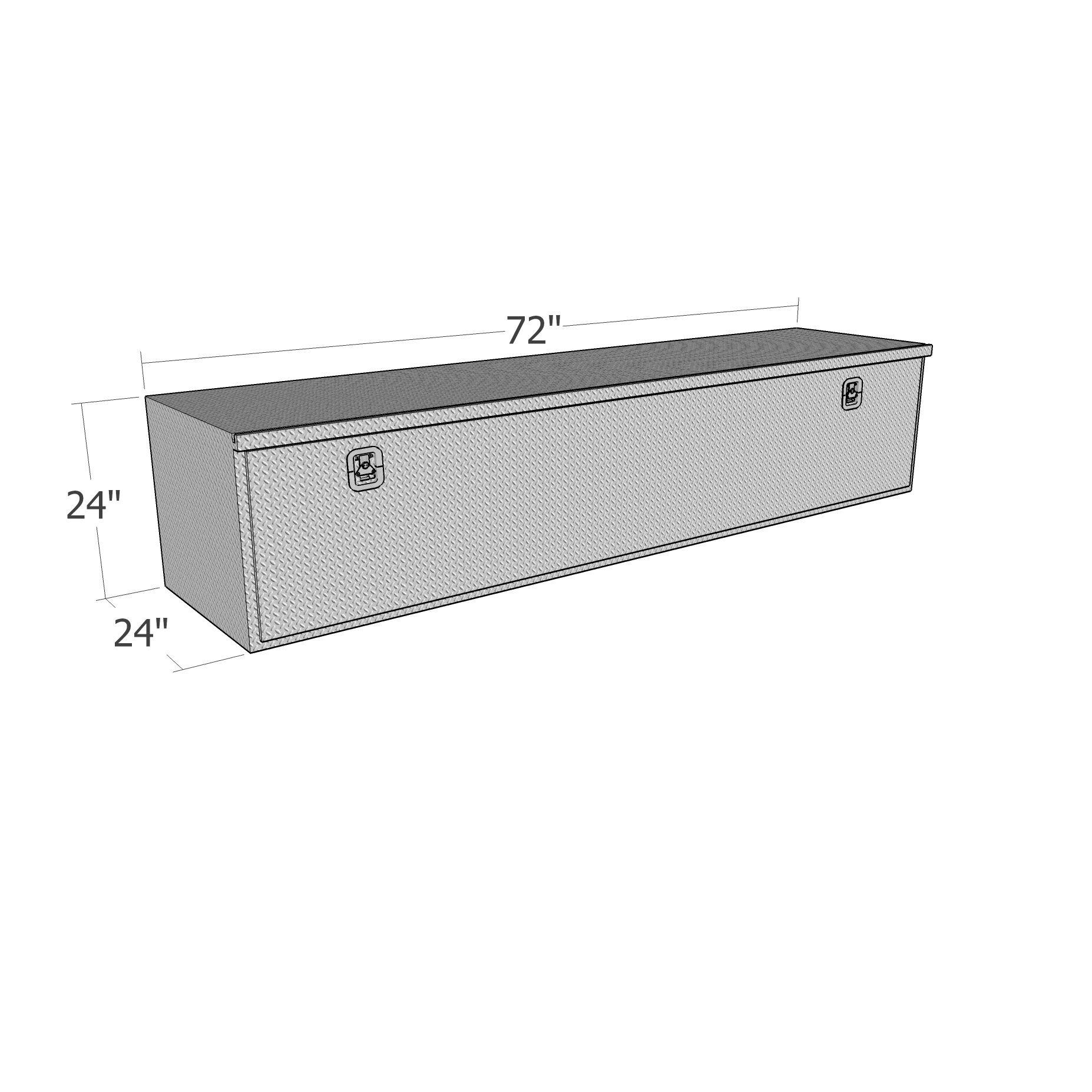 24"x24"x72"L HD Under Body, drop down door; .100" Diamond Tread Aluminum; .125" Smooth Aluminum Bottom Corner Reinforcement; Welded Gussets; Full Wrap One Piece Body; Full HD Aluminum Lock Cover; Mounting Hardware Included, Black Texture