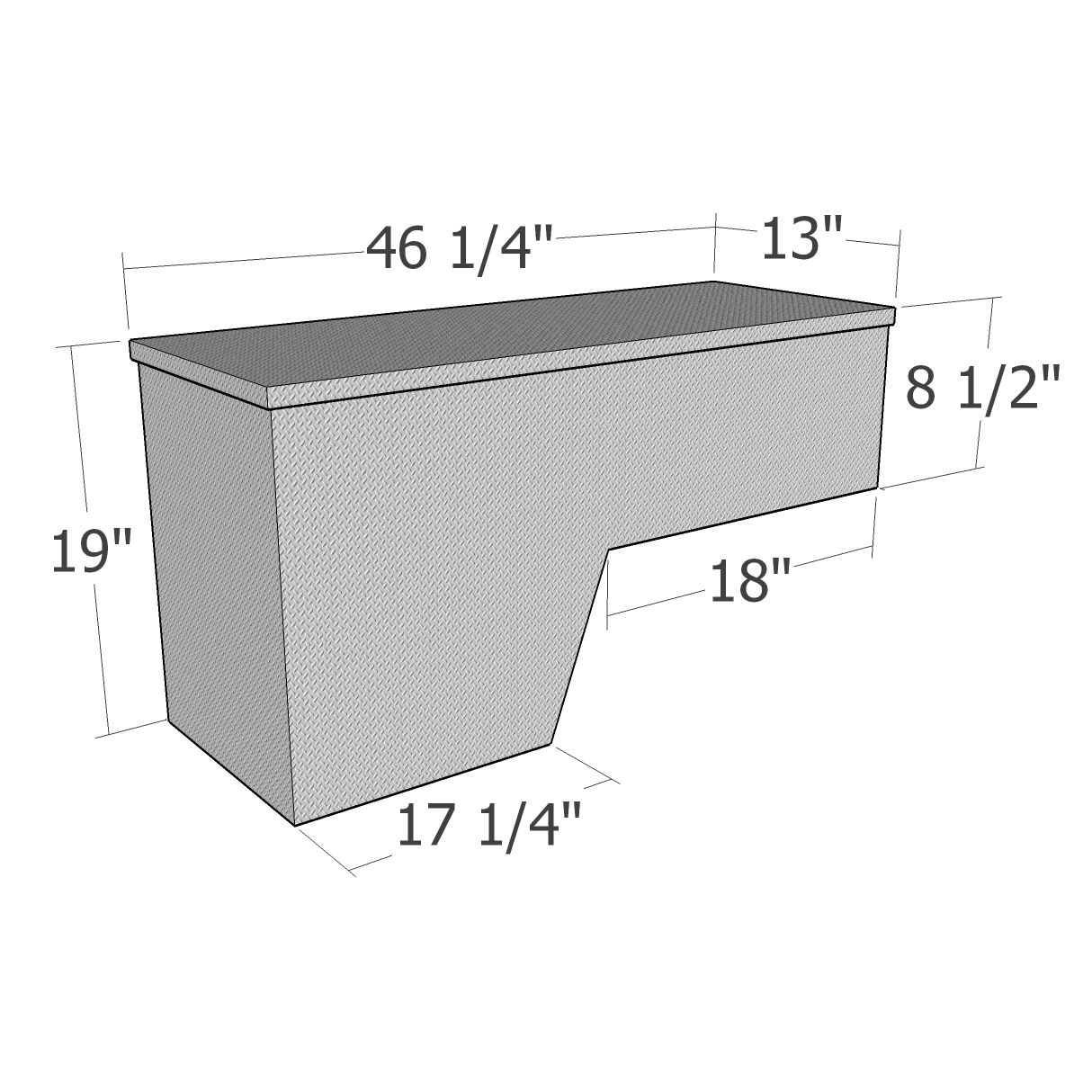 46" Pork Chop Driver Side Wide Comm Class; Over the Wheel Well Design; Full Metal Guards on Hardware & Gas Prop; Reinforced Beveled Lid Design; Heavy Duty Construction; Built-in Organizer; Push button Rotary Latch; Black Texture Coated