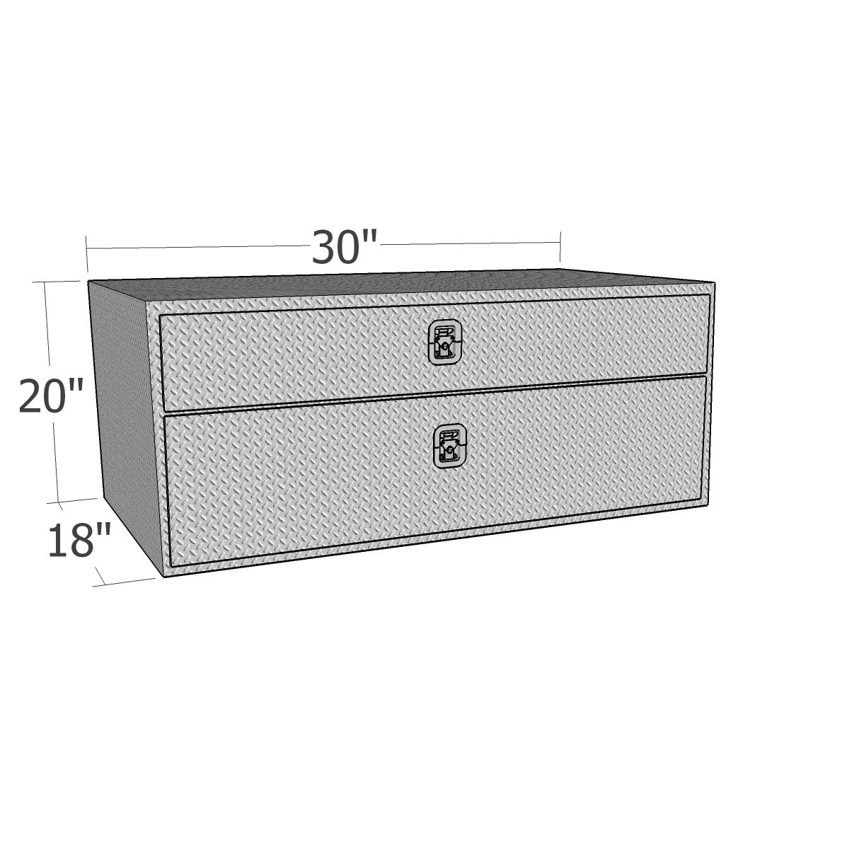 30"x20" UnderBody w/Top Drawer; Top Drawer with SS Locking/Folding T Handle; Reinforced Bottom Door; Compartment for Large/Heavy Cargo; 2 Ball Bearing Slides- 100 lbs. Rating; Rull Rubber Weather Seal; Large Rain Gutter