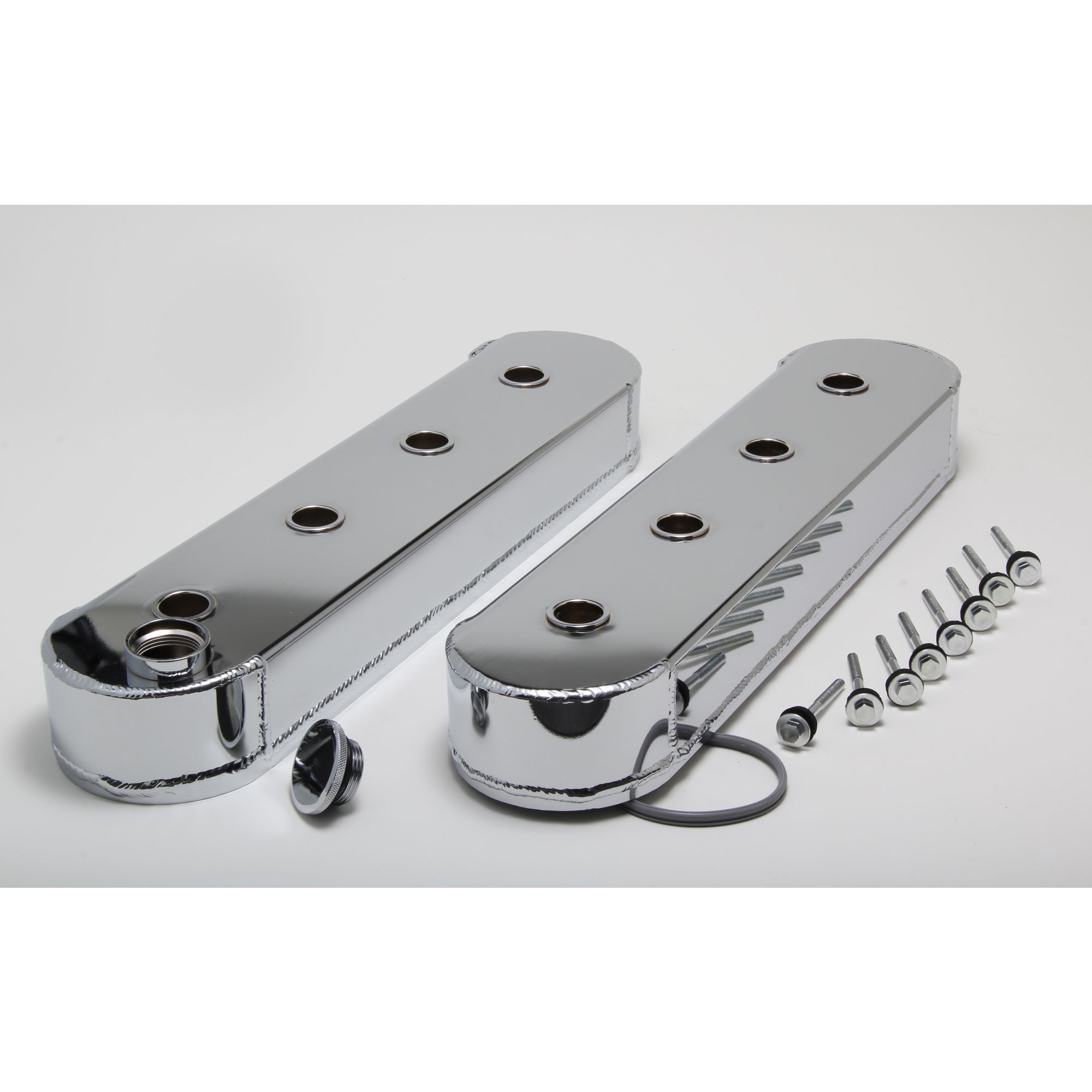 Contents: 1 pair of aluminum valve covers, o-ring seal, threaded/o-ringed filler cap, mounting bolts