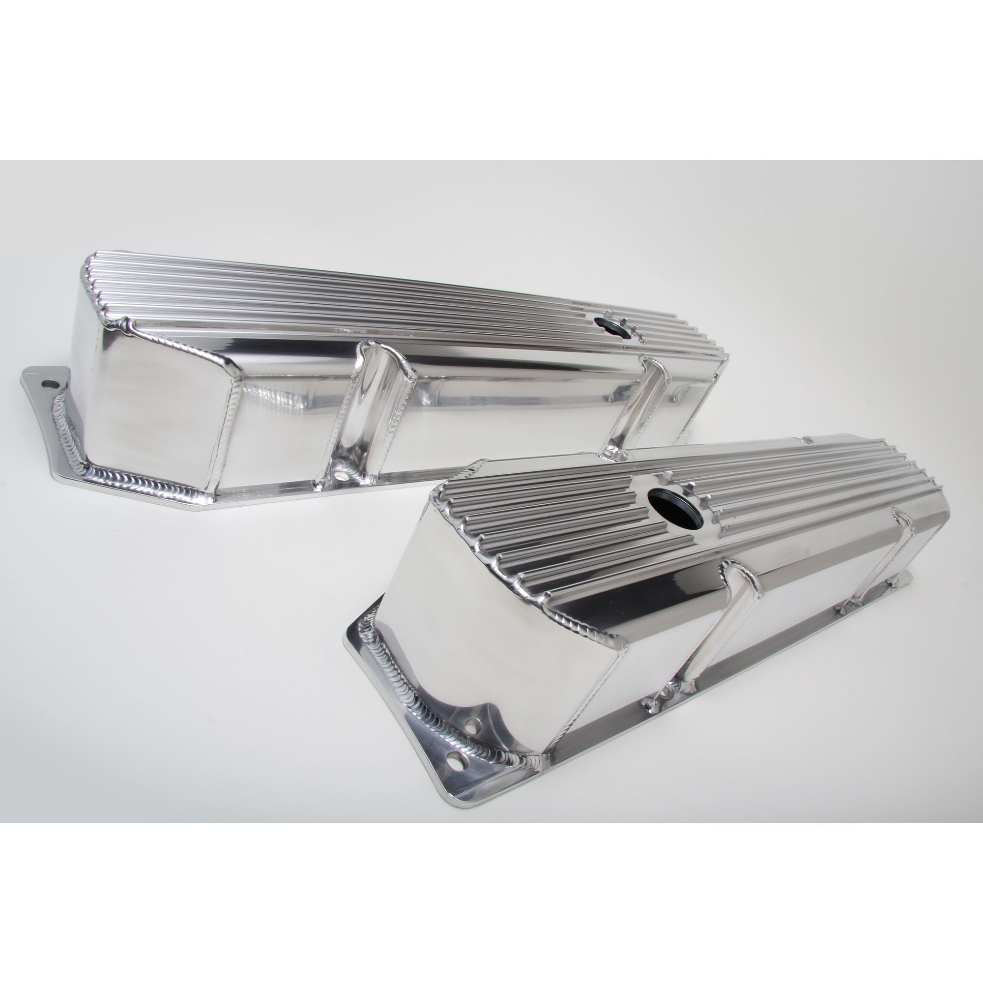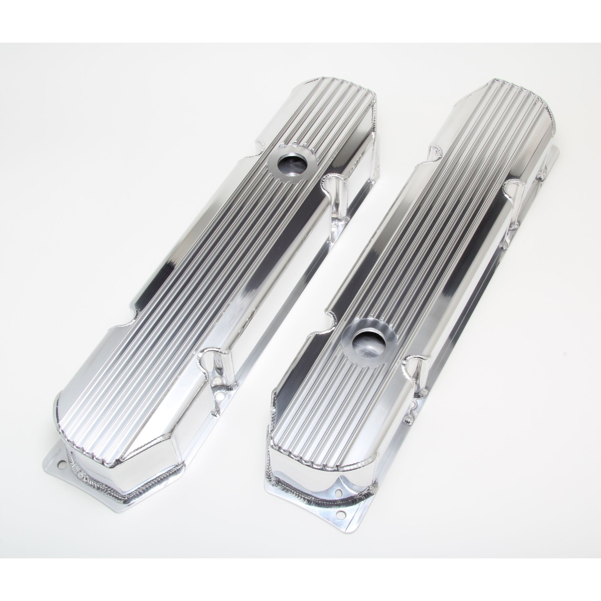 Fabricated Aluminum Valve Covers with Fins; BB MOPAR V8 383-440 (B & RB Series) Engines; with holes- POLISHED Aluminum