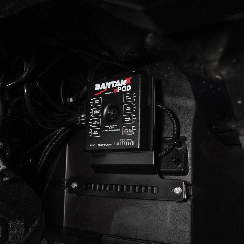 sPOD BantamX HD vehicle-specific kit for the Polaris Pro R (2022+) UTV has been designed specifically to integrate the sPOD HD panel into your cabin seamlessly while providing a safe place to access all your controls. Designed to mount the control panel on the roof bar of your Pro R while having your BantamX tucked away at the lower foot panel.