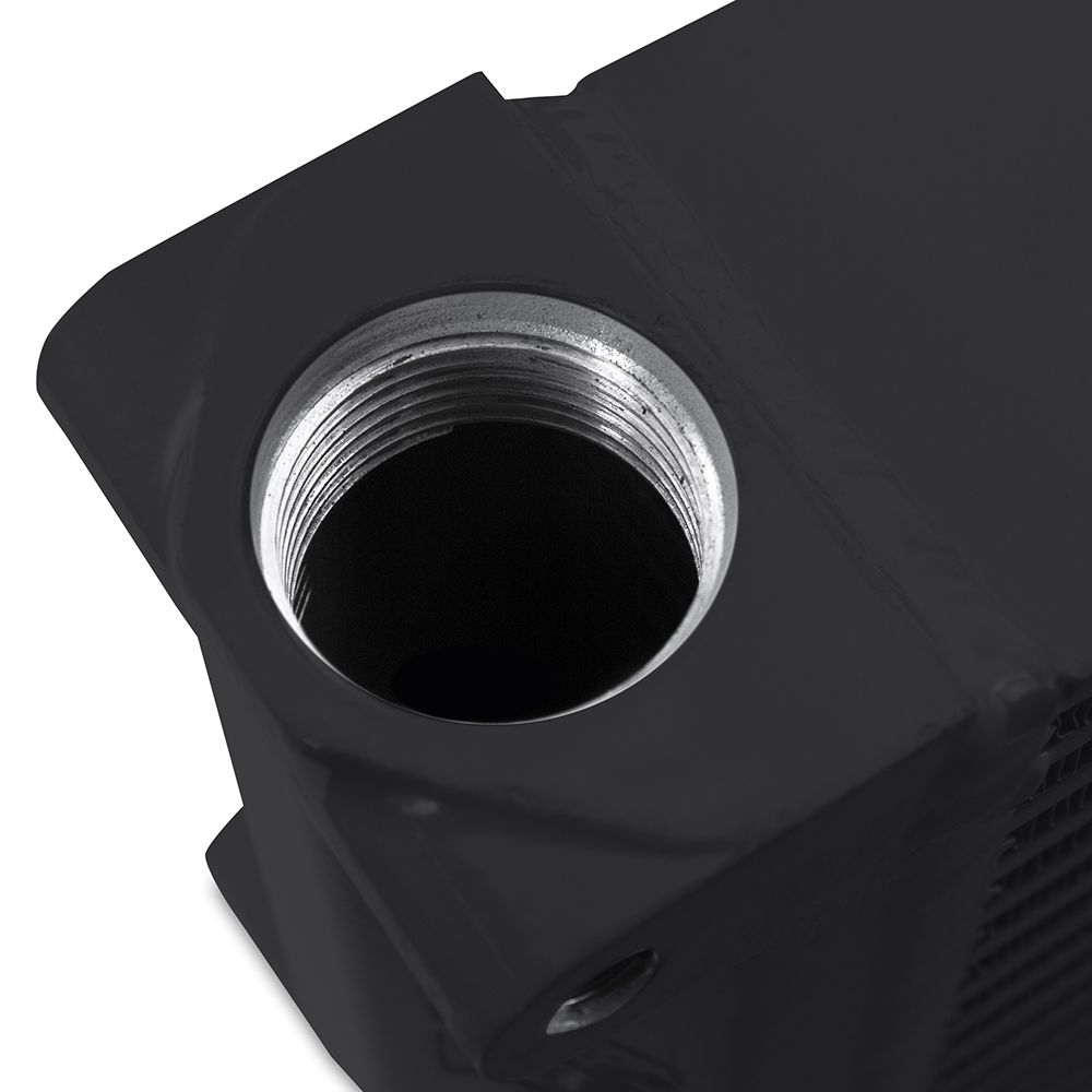 No street, track, or trail build would be complete without a fluid cooler that can keep your engine safe through it all. This Mishimoto heavy-duty fluid cooler is designed to keep your oil, coolant, or transmission fluid cool in even the most extreme situations. The 17-row core is 10in long, 7.5in tall, and 2.5in thick with a 1.4-quart capacity for effective cooling on any high-performance application. This fluid cooler features turbulated fins to evenly circulate fluid within the cooler and make the most of the full core. Large -16 ORB ports ensure ample flow for even the most demanding engines. The durable cast-aluminum end tanks are precision TIG welded to the bar-and-plate core for a fluid cooler that can endure the stresses of racing or everyday driving. The end tanks feature eight M8 flush mounting points with steel threaded inserts for a secure connection to any custom bracket, while the same-side inlet and outlet make routing lines simple. The available silver or black powder coat protects this cooler against the elements and complements any design. Like all our universal coolers, this 10in heavy-duty bar-and-plate fluid cooler is backed by our Mishimoto Lifetime Warranty for a lifetime of worry-free performance.